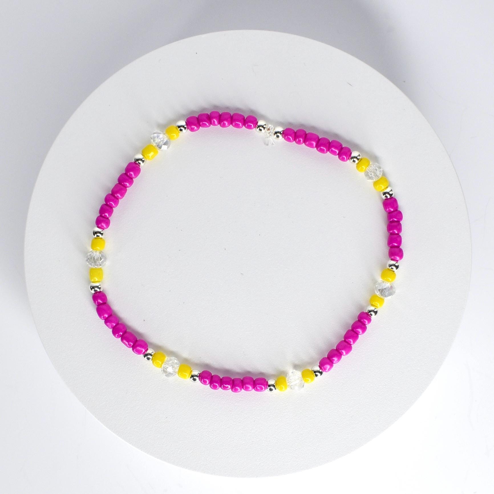 Each bracelet in this two-piece collection features playful daisy flowers, vibrant yellow discs, hot pink beads and sparkly iridescent crystals—all thoughtfully handcrafted and hand-strung onto durable elastic cord. Wear them all together for a bold statement or pick your favorites for a more subtle vibe. They're perfect for spring and summer adventures, festival season, teacher gifts or just treating yourself to something fun.