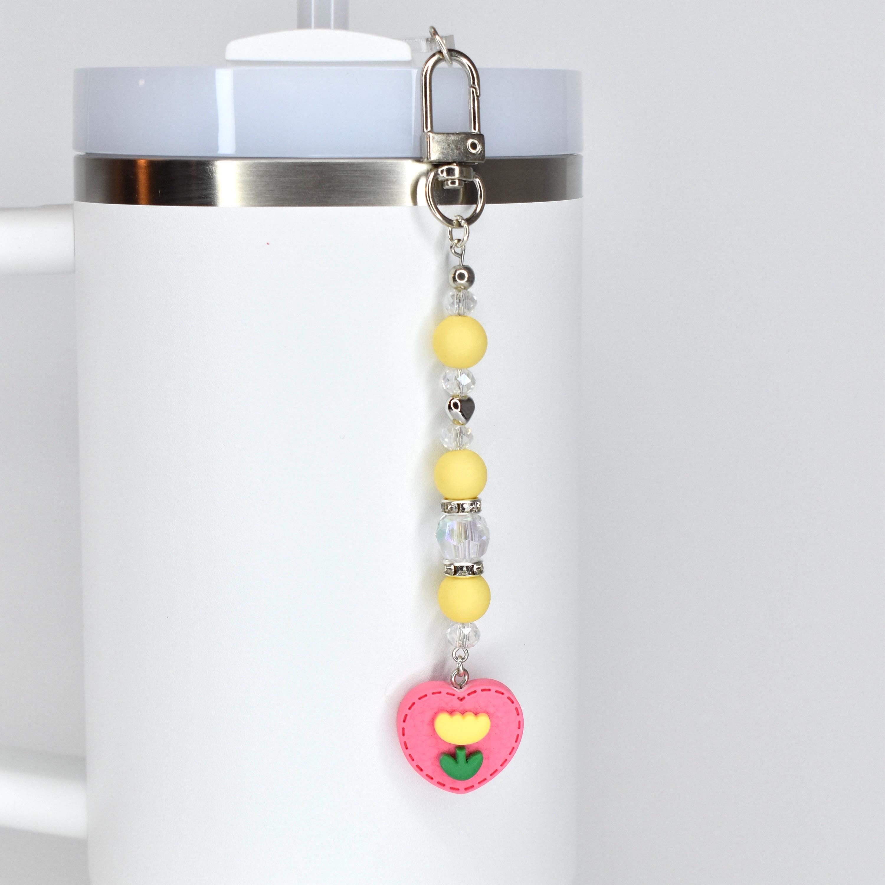 Add a pop of color and personality to your tumbler, water bottle or bag with these adorable beaded straw charms! Each charm features a sweet tulip heart pendant with colorful beaded details, perfect for adding a fun touch to your everyday essentials.