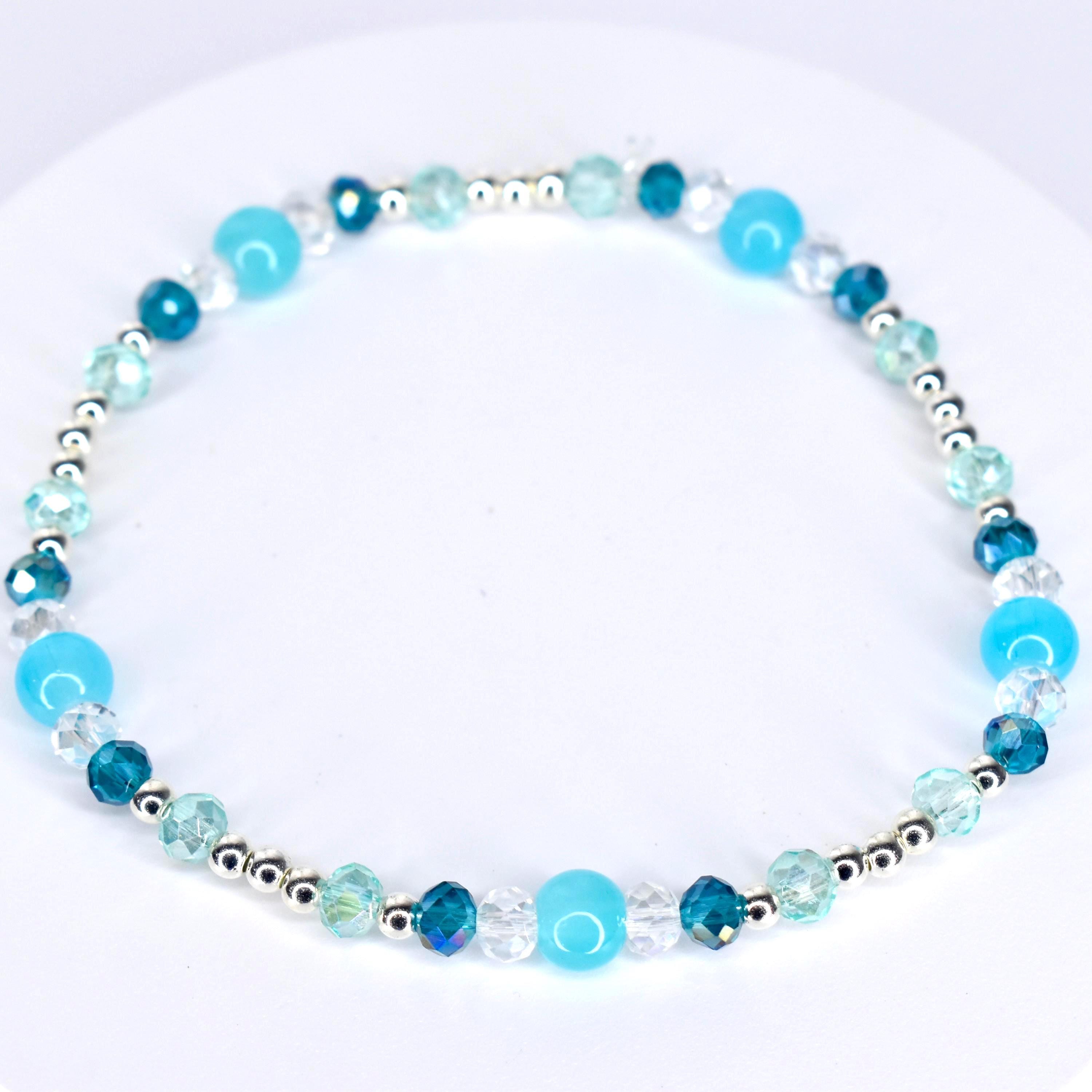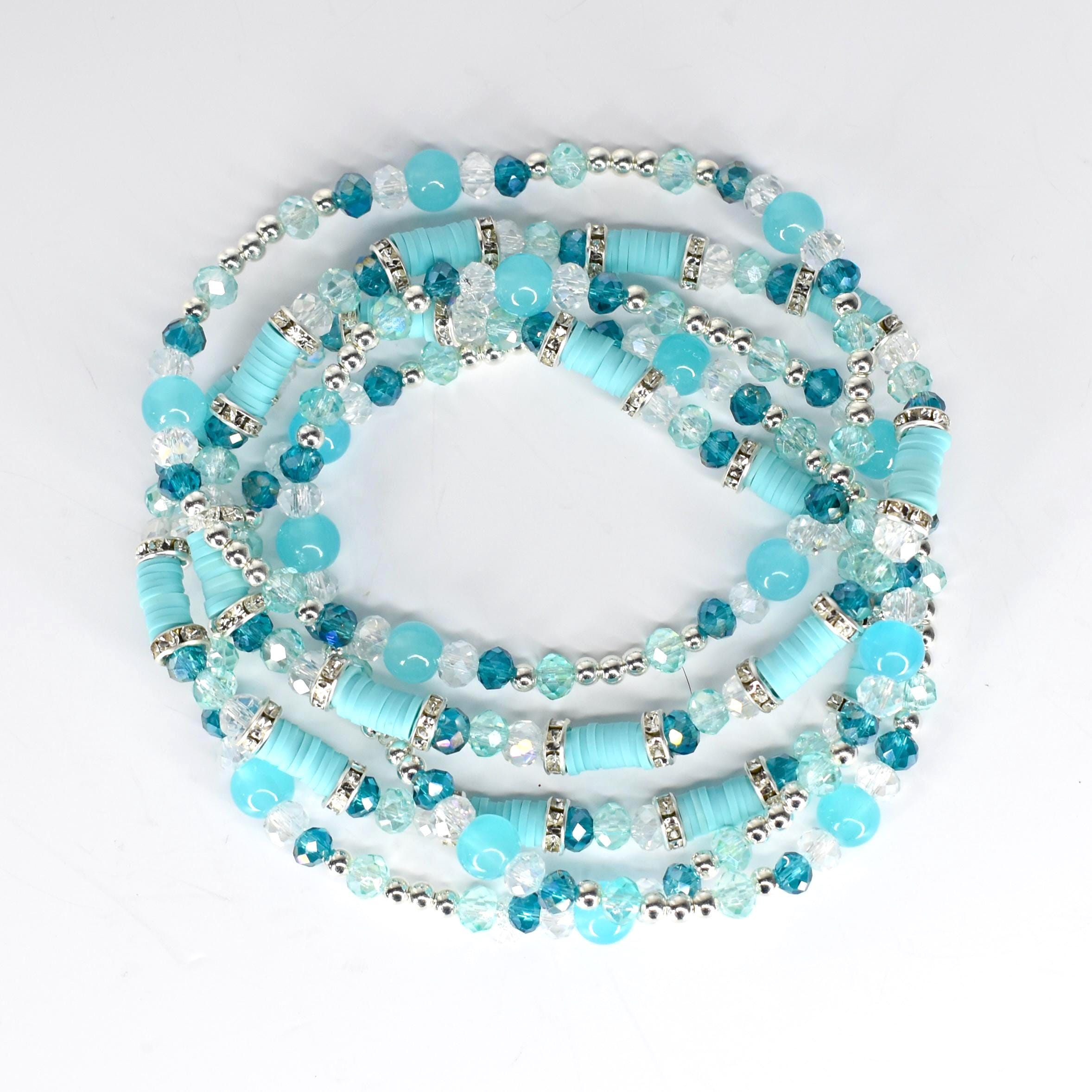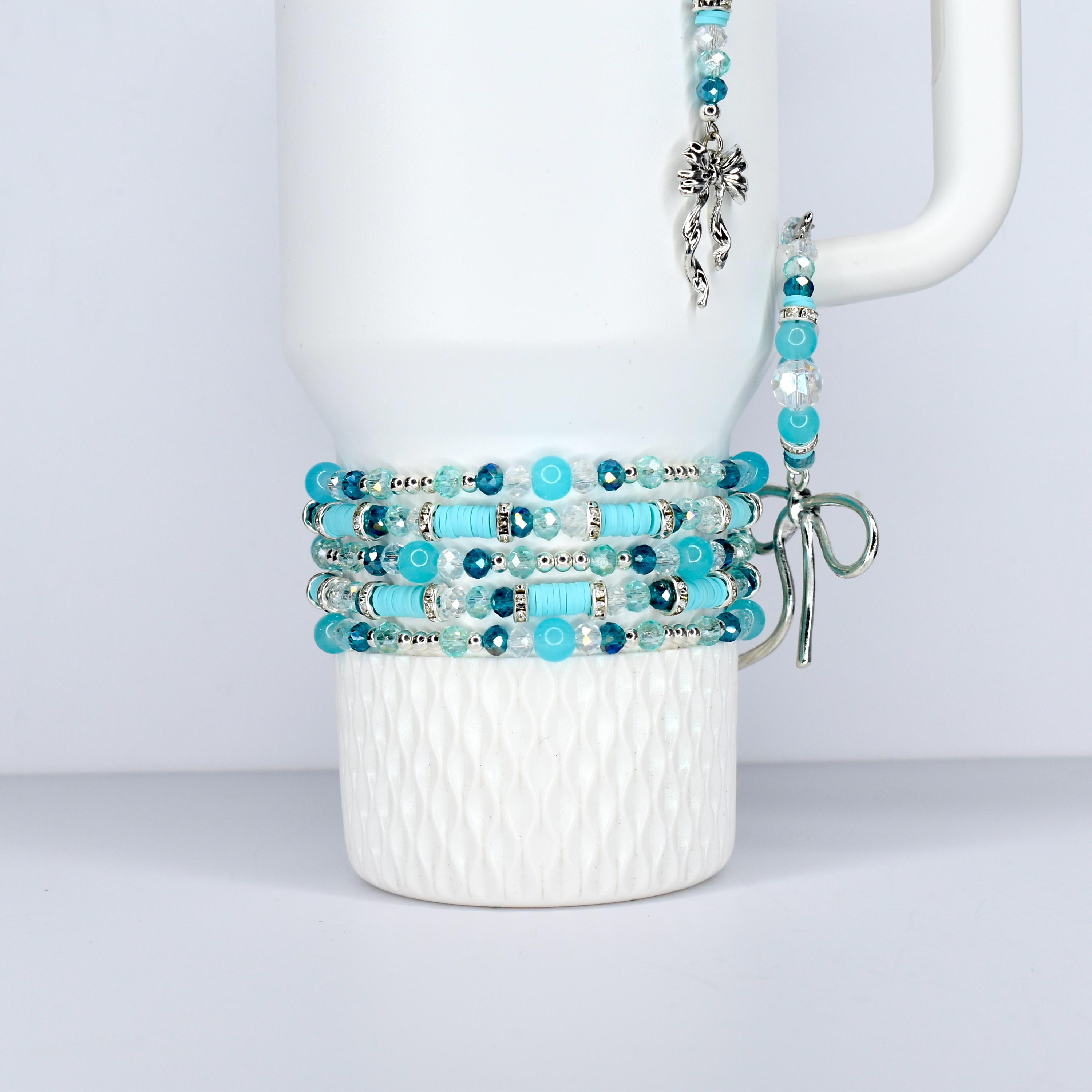 Meet your new favorite cup accessory! This stunning 5-piece bracelet collection features gorgeous ocean-inspired tones in turquoise, teal and crystal clear with silver accents that bring coastal vibes to every sip.
