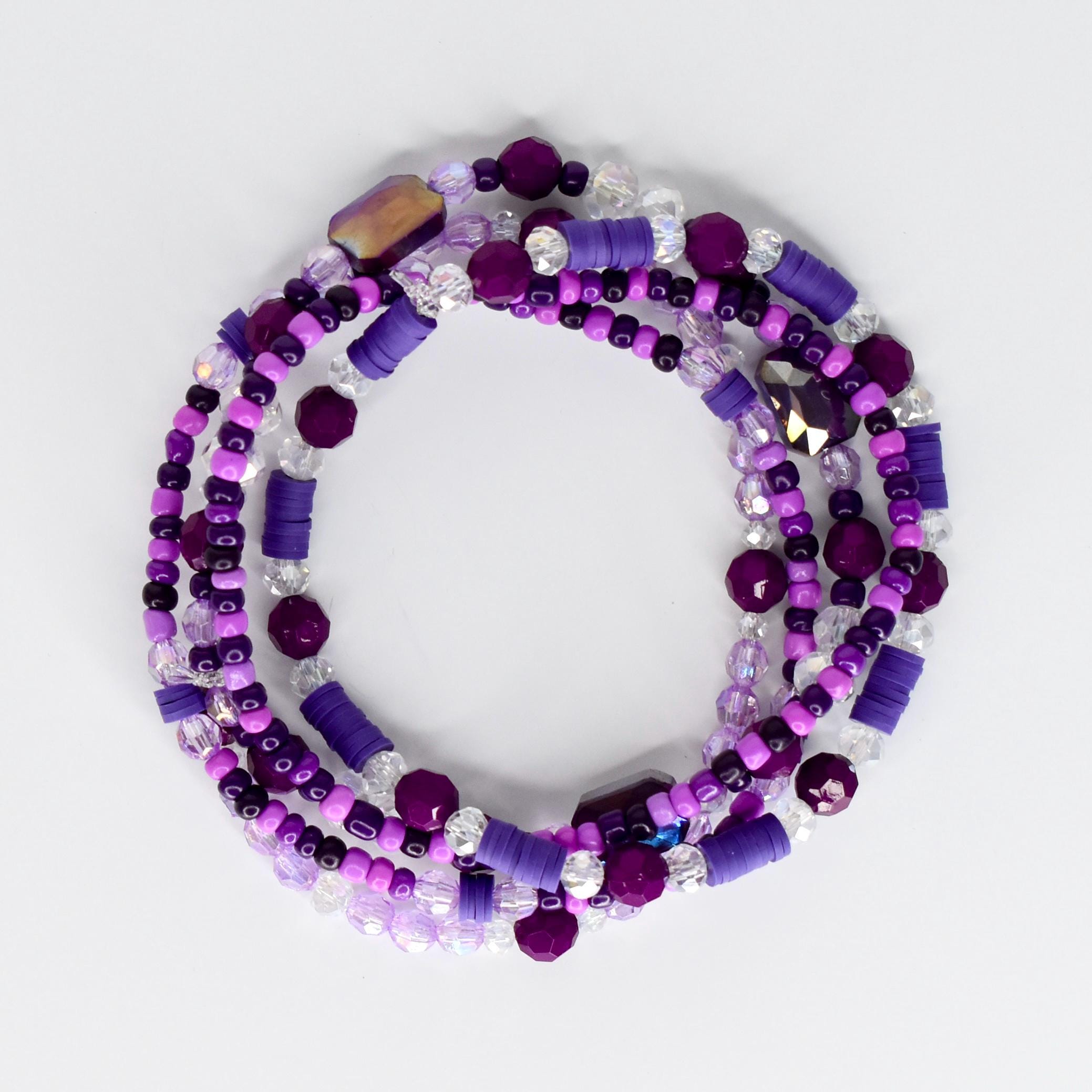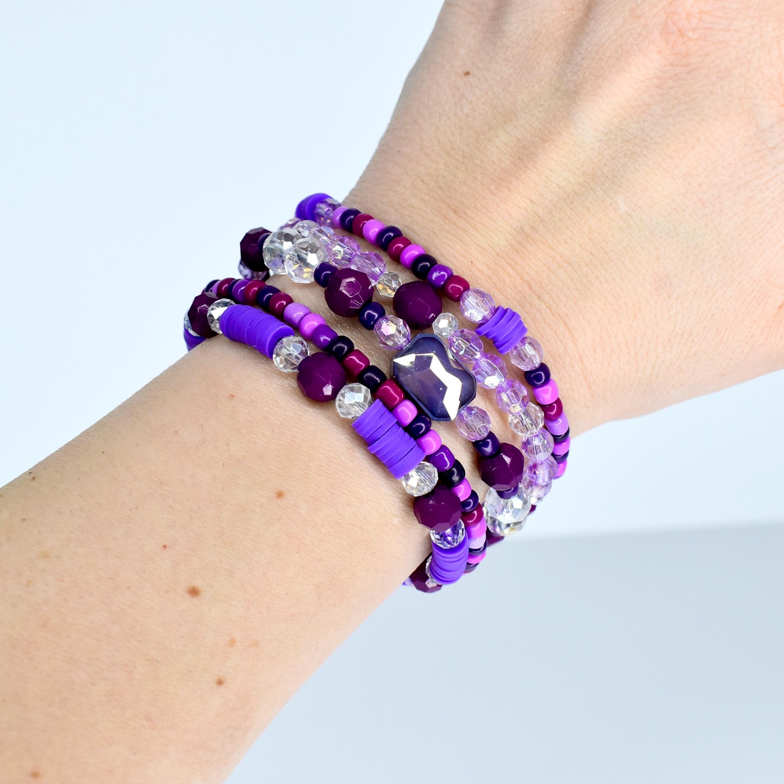Meet the Purple Reign stack — five stunning handmade bracelets in shades of purple, magenta and crystal that look absolutely incredible together. This set was made for the purple lovers out there.