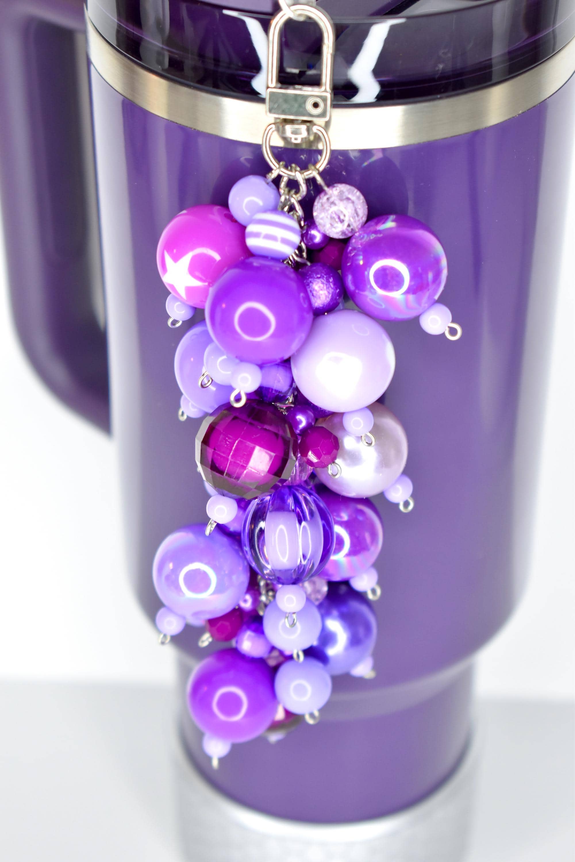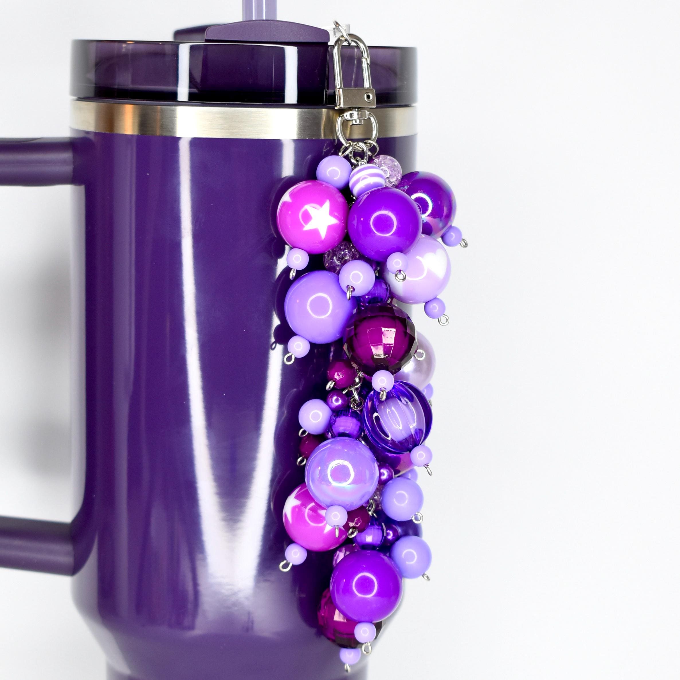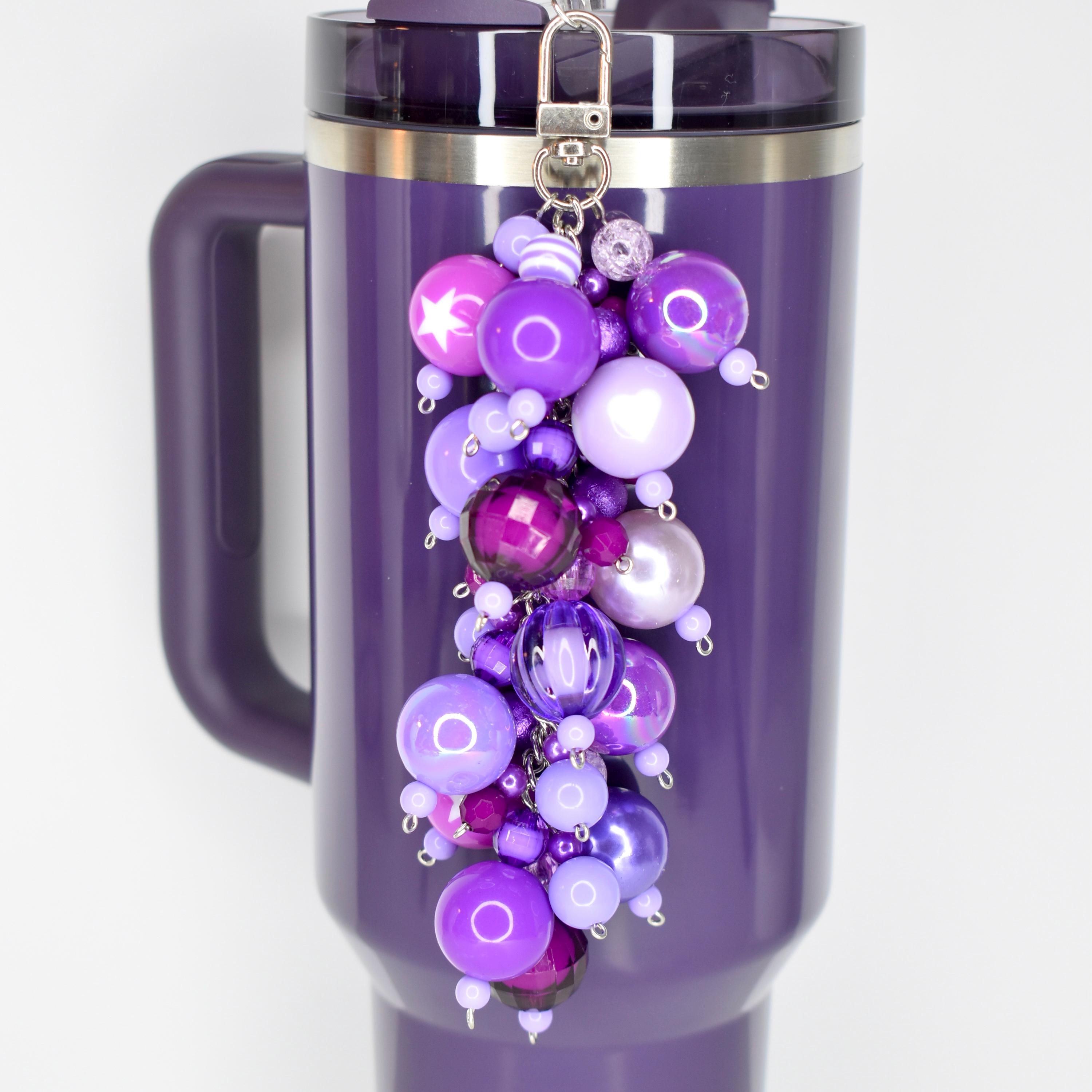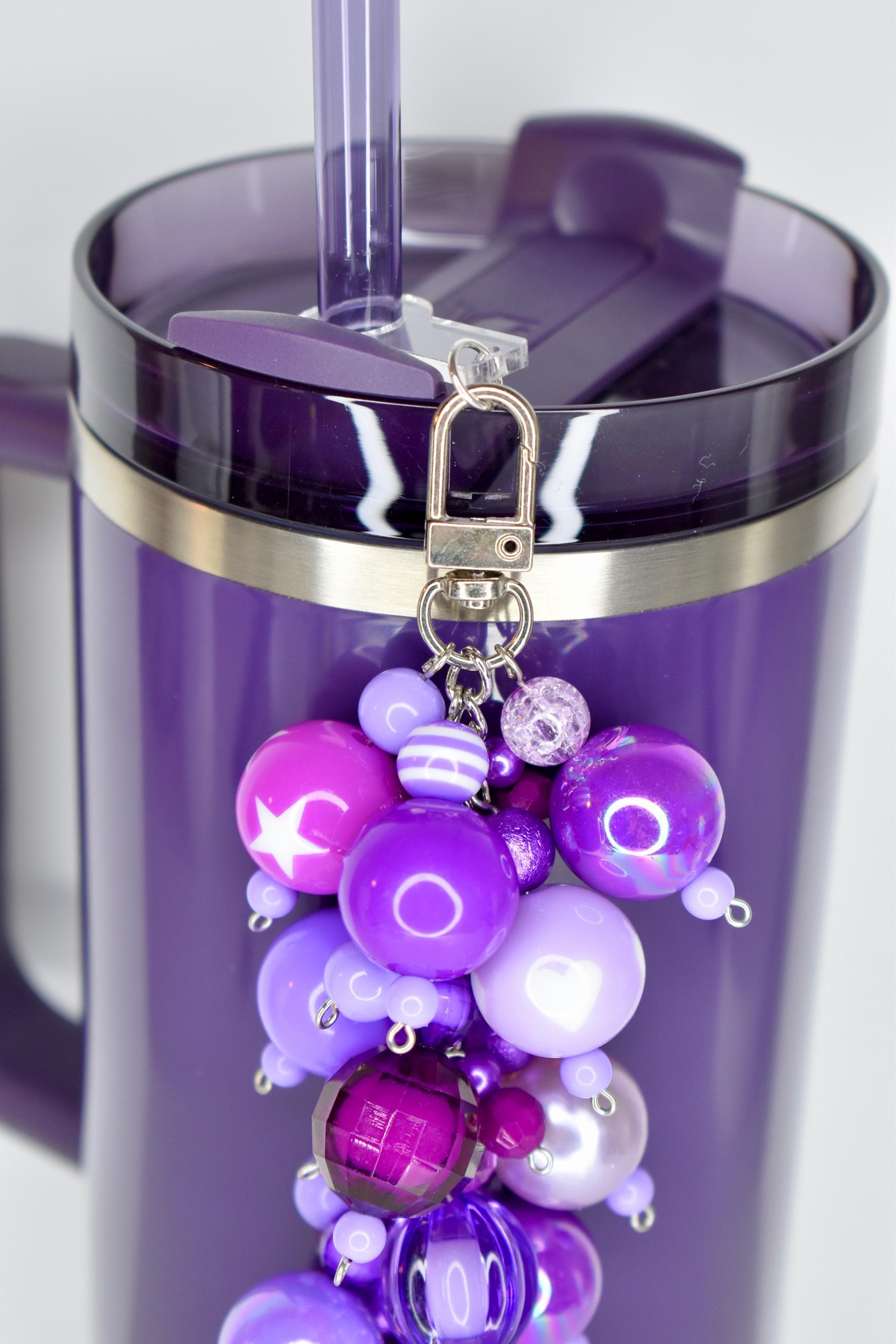 Add some serious wow factor to your tumbler with this handmade purple bauble straw charm. Loaded with a gorgeous cascade of lavender, magenta, plum and violet beads in all different sizes and textures — this piece is a total statement maker.