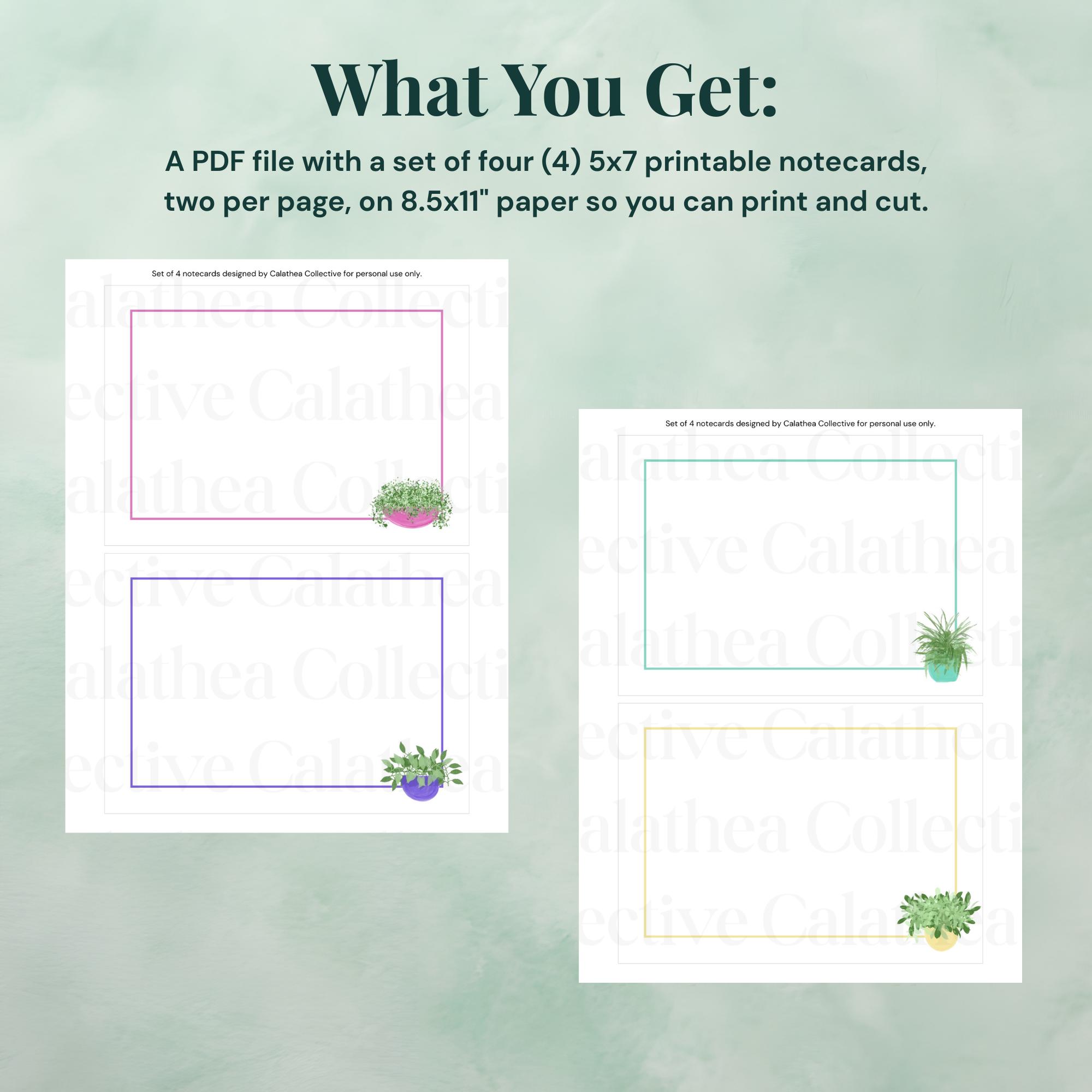 🌿 Hand-Drawn Watercolor Houseplant Notecard Set — Printable Digital Download