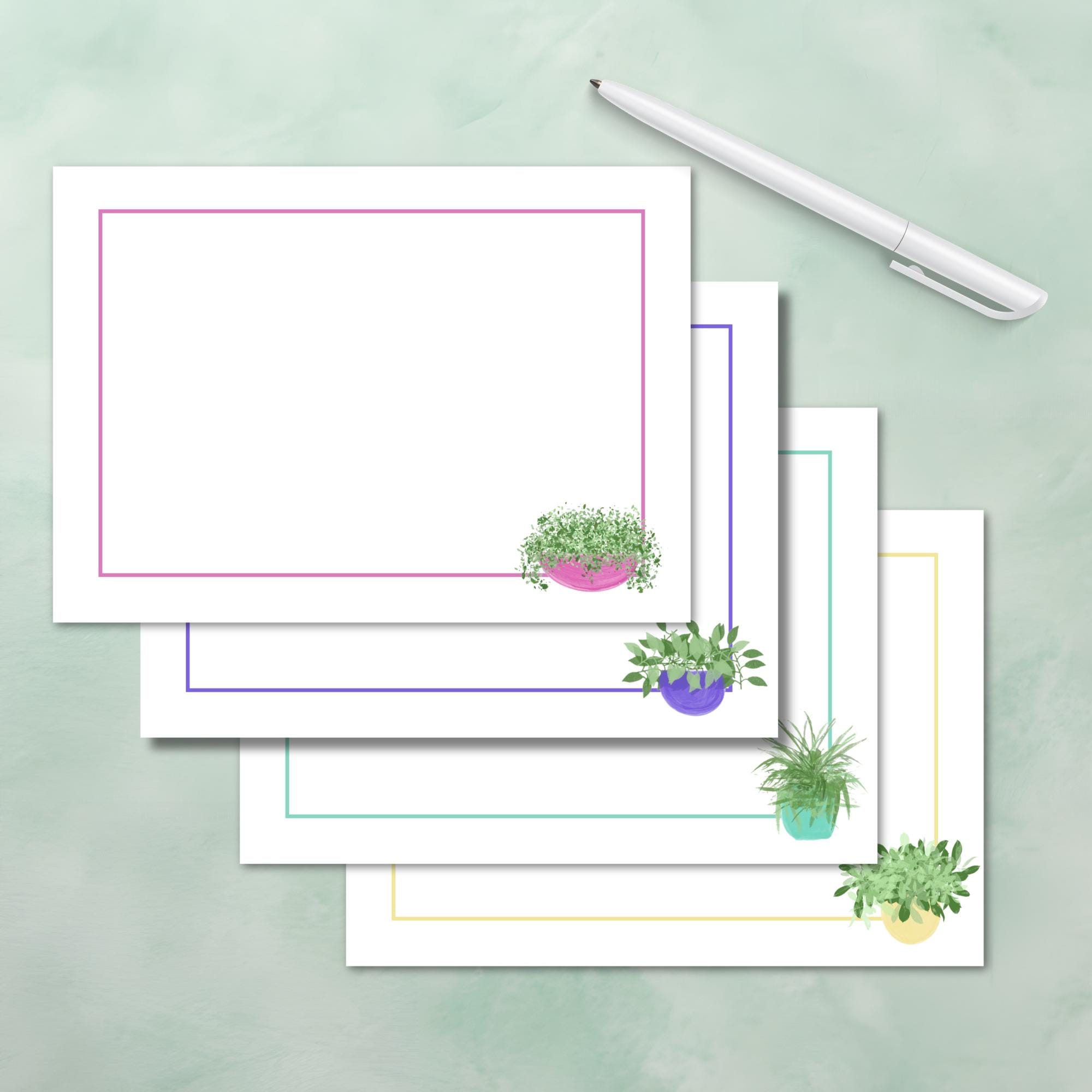 Bring a touch of nature to your correspondence with this charming set of 4 printable notecards featuring original hand-drawn watercolor houseplant illustrations. Each card showcases a unique botanical design painted by hand, making every note you send feel personal and thoughtful.