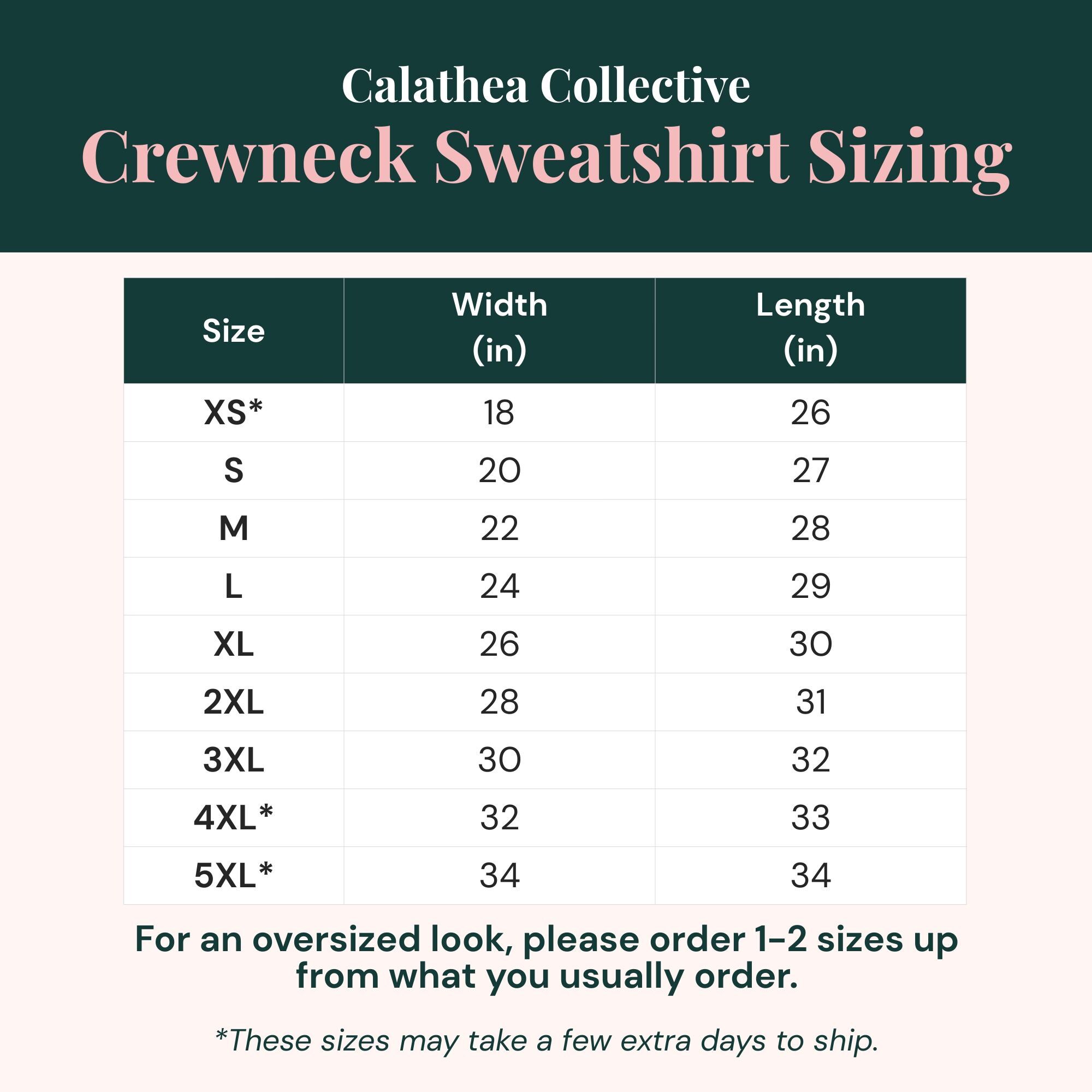 Made using a Gildan® 18000 heavy blend crewneck sweatshirt for premium comfort and durability. For a more oversized, relaxed look, we recommend ordering a size or two up from your regular size.
