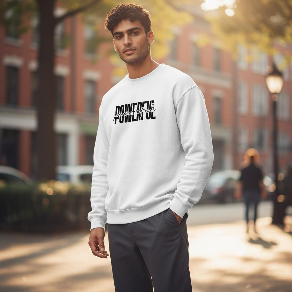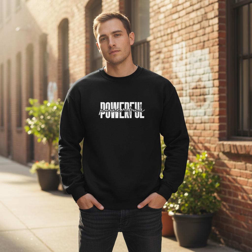 Make a statement in this "Powerful" crewneck sweatshirt featuring a bold layered typography design that's equal parts stylish and empowering. The perfect everyday piece to remind yourself (and everyone around you) of the strength you carry.