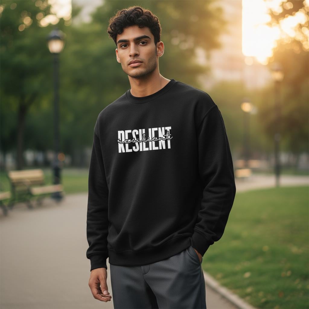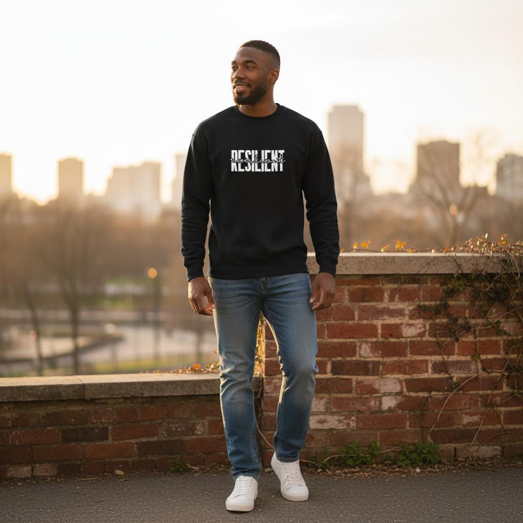 Wear your strength on your sleeve — literally. This gender neutral "Resilient" crewneck sweatshirt features a bold layered typography design that's equal parts stylish and empowering. A daily reminder that you've made it through every hard day so far, and you'll keep going.