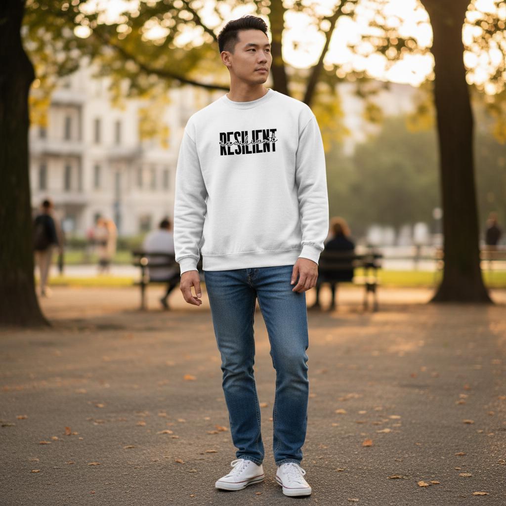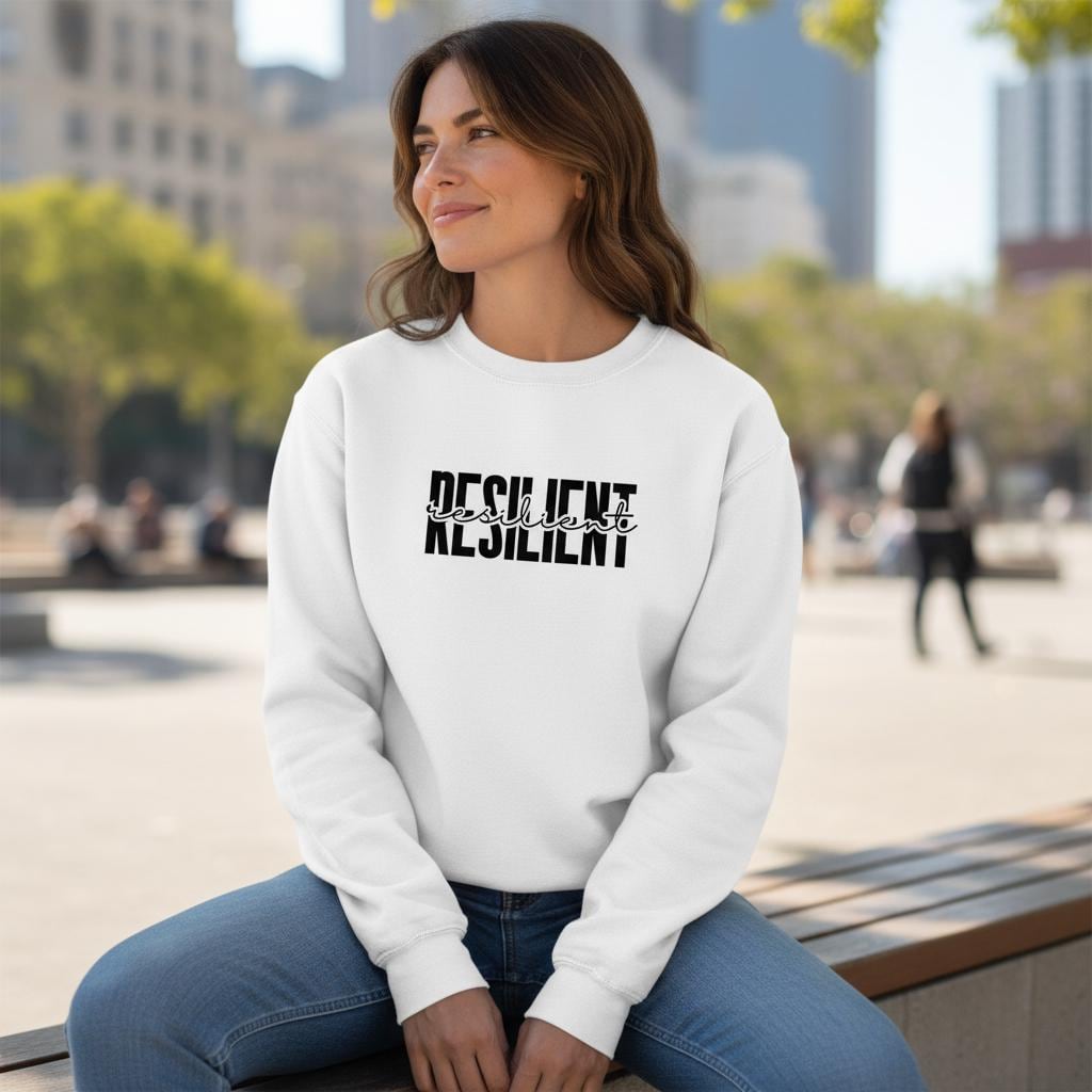 This cozy crewneck features the word "RESILIENT" in bold block letters with a script overlay — a modern design that pairs beautifully with your favorite jeans, leggings or loungewear.