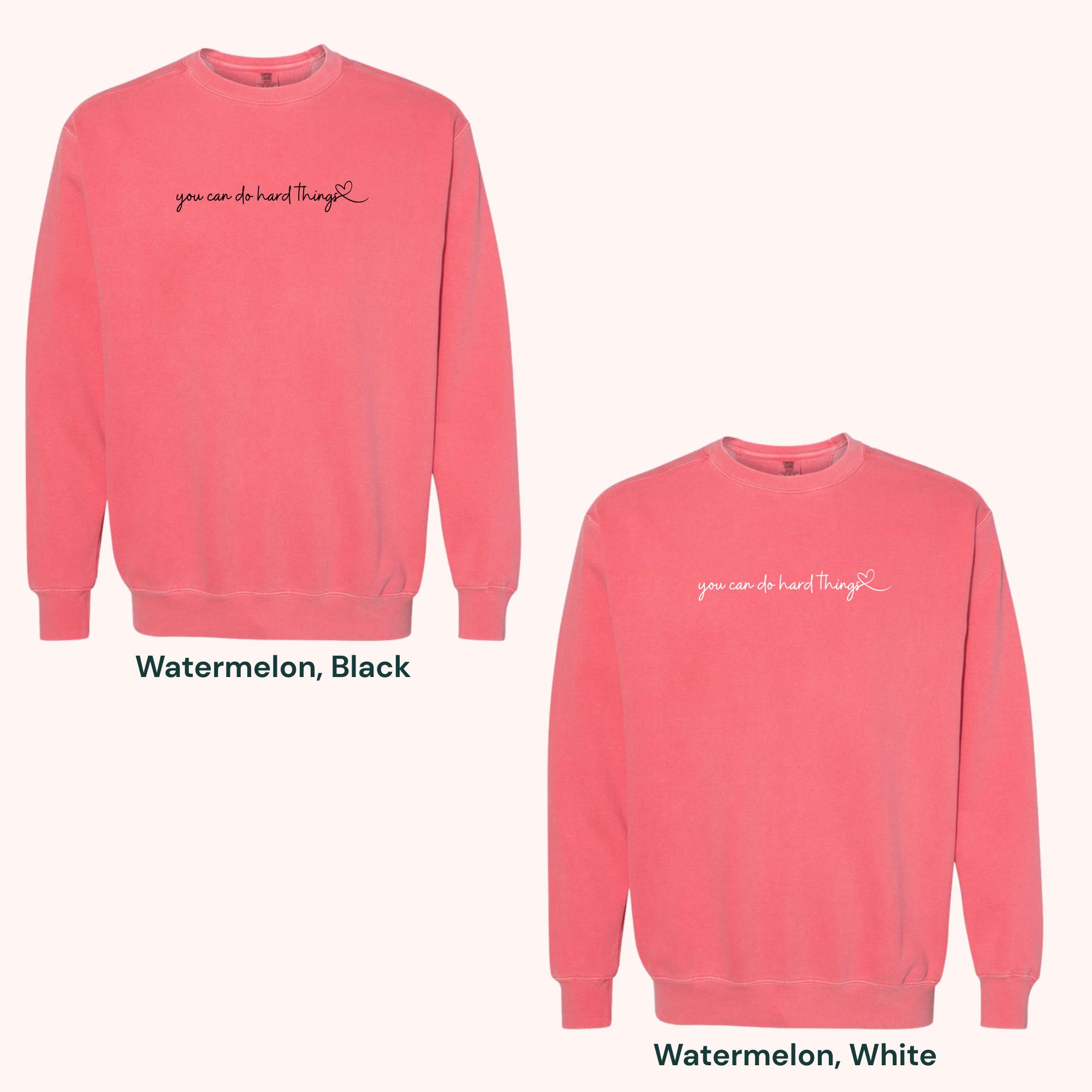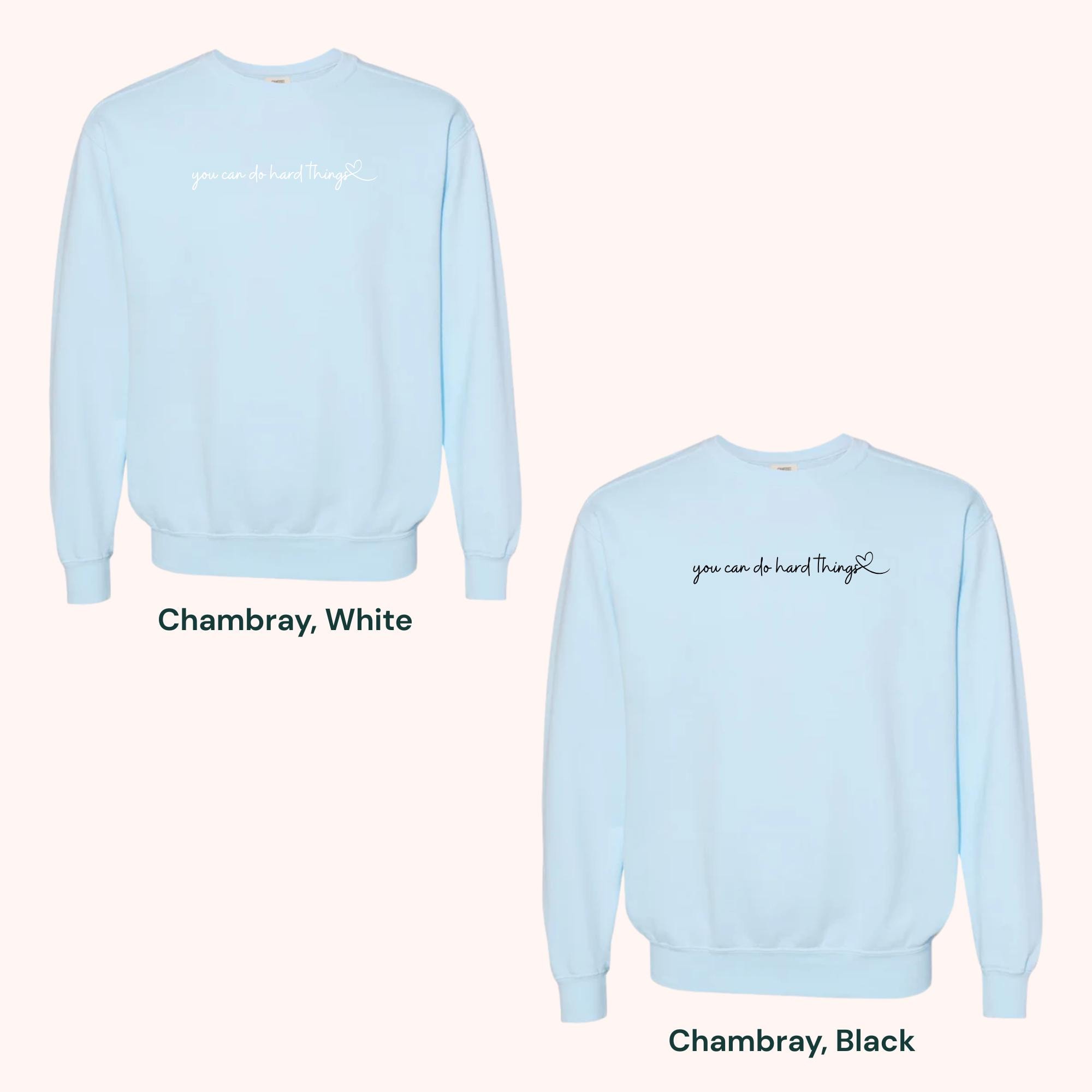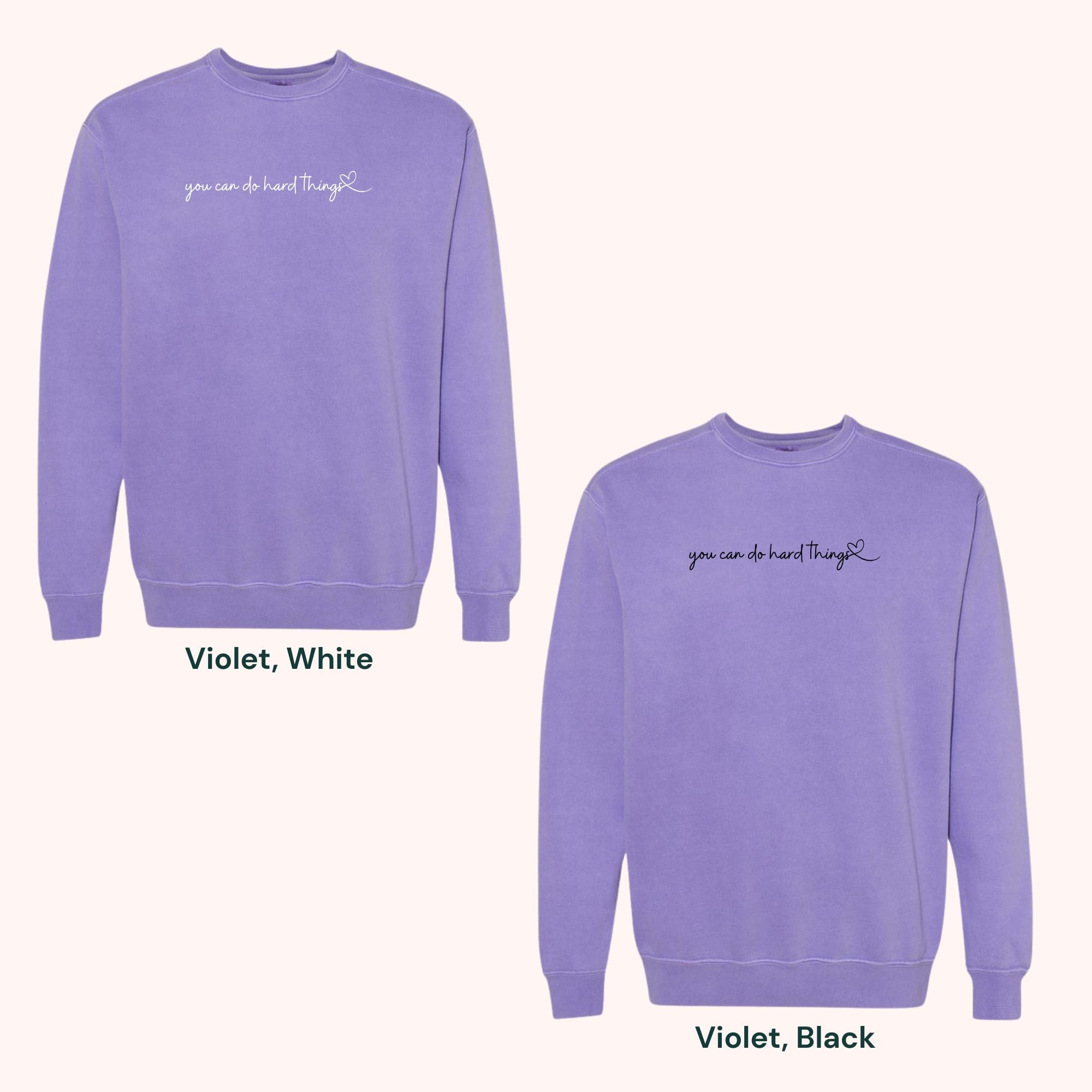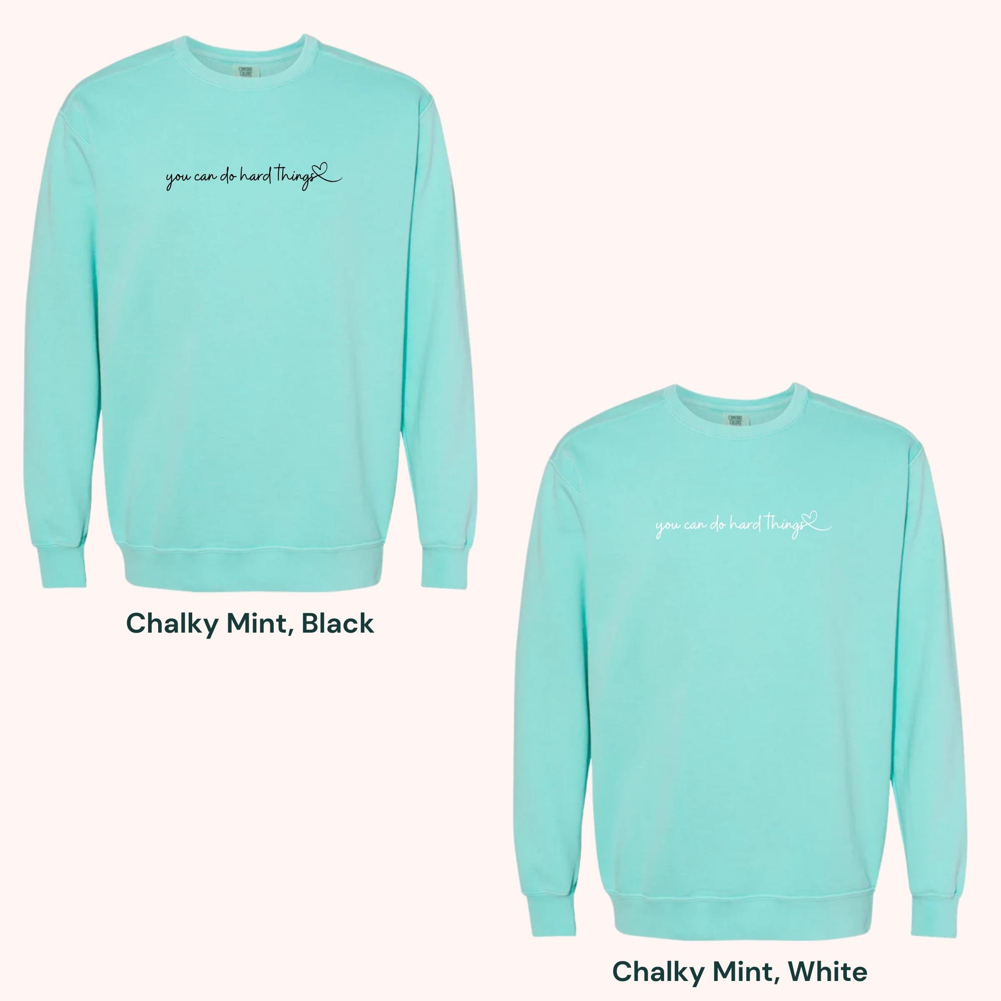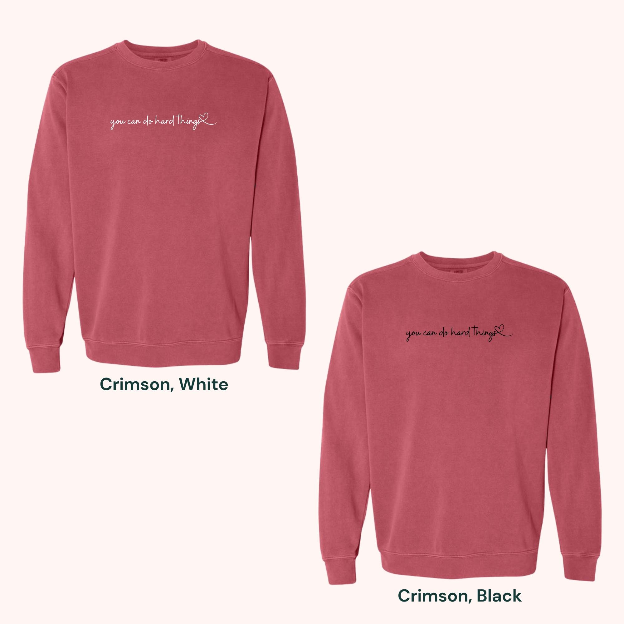 This cozy crewneck features the phrase "you can do hard things" in a beautiful handwritten script with a heart detail — a subtle yet meaningful design that goes with everything in your closet.