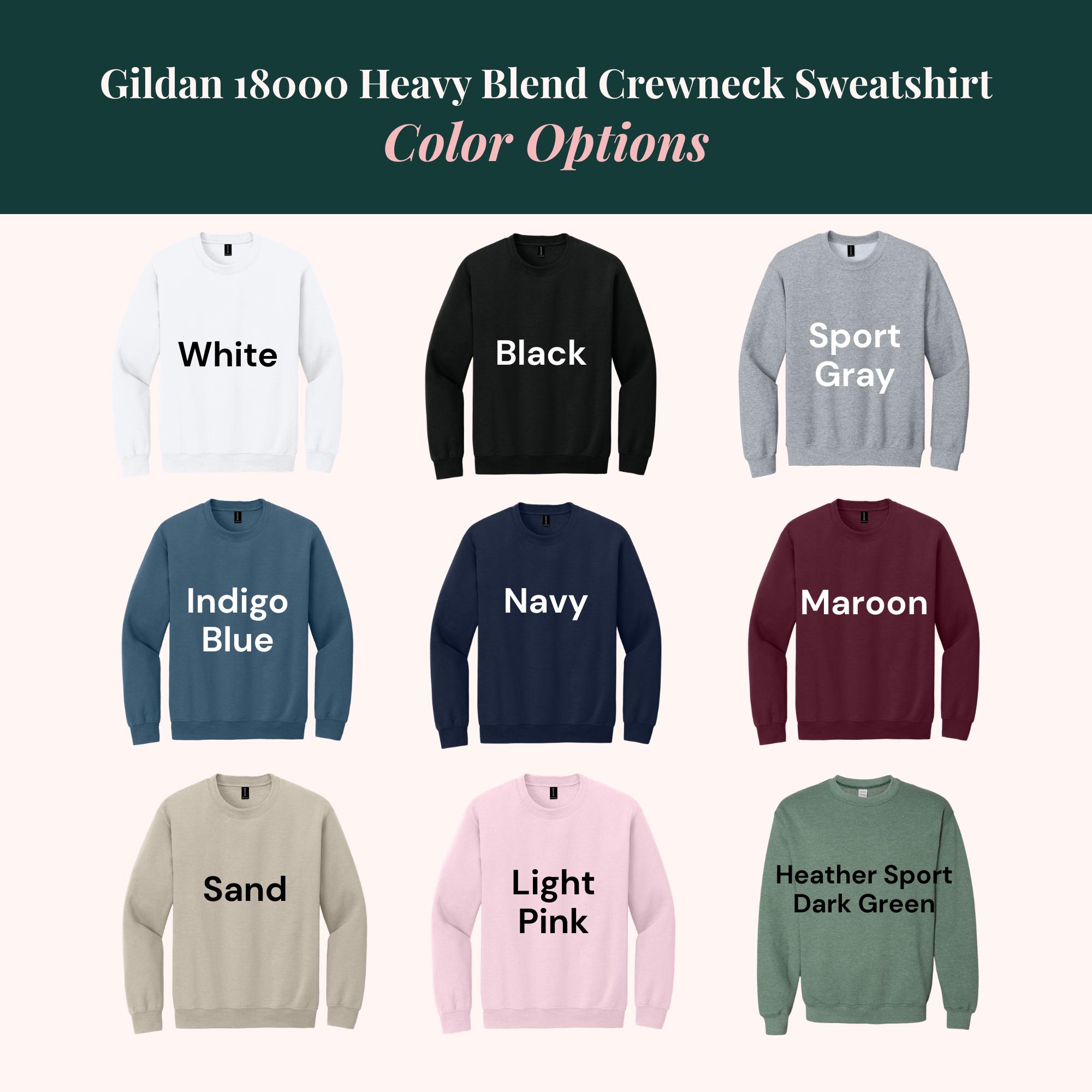 Printed on a Gildan® 18000 heavy blend crewneck sweatshirt for premium comfort and durability. For a more oversized, relaxed look, we recommend ordering a size or two up from your regular size.