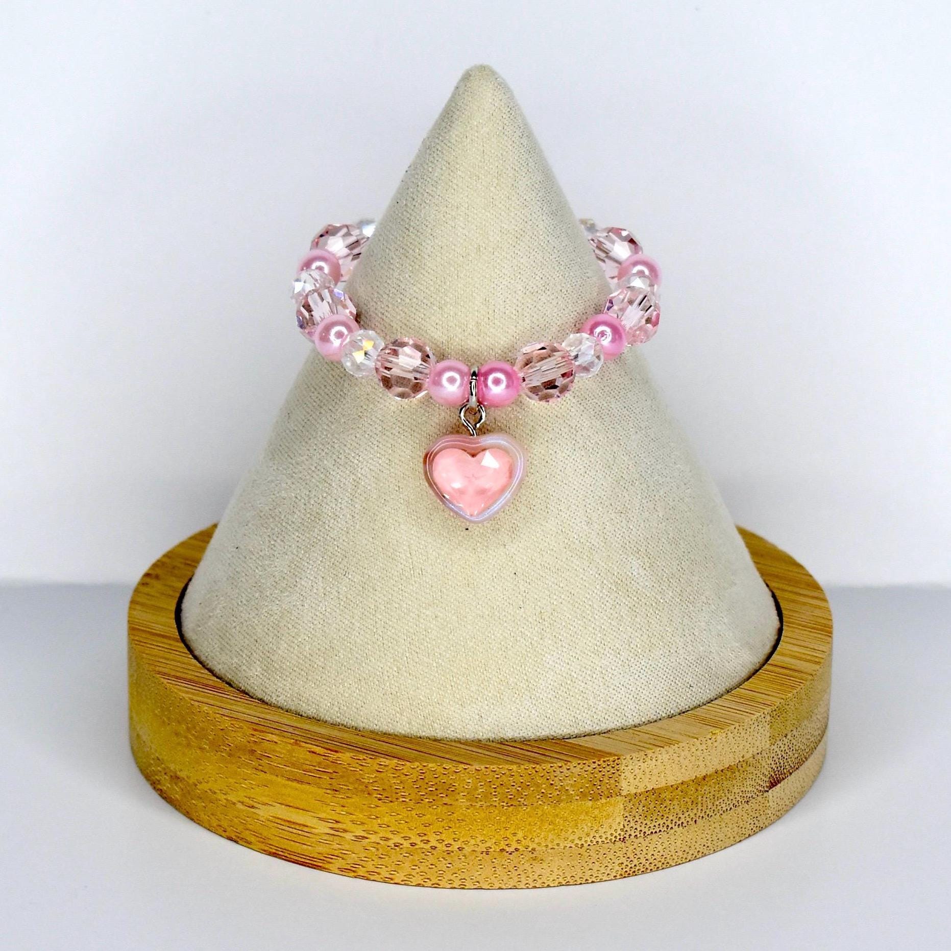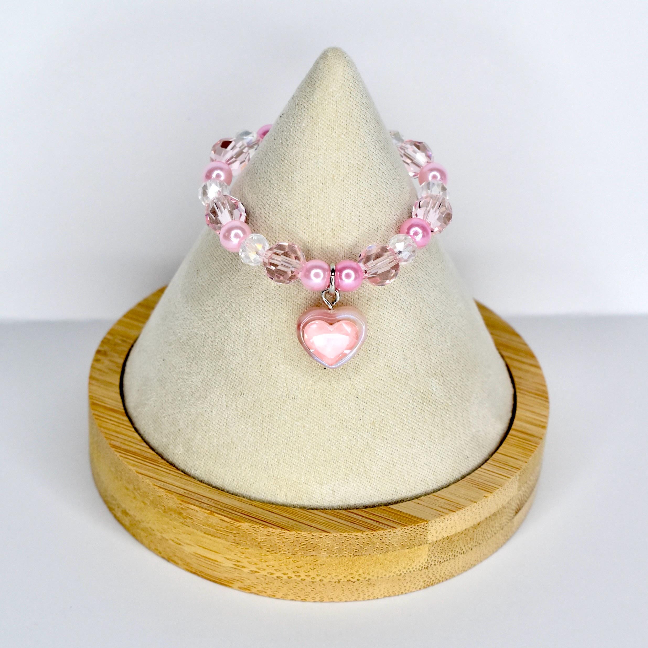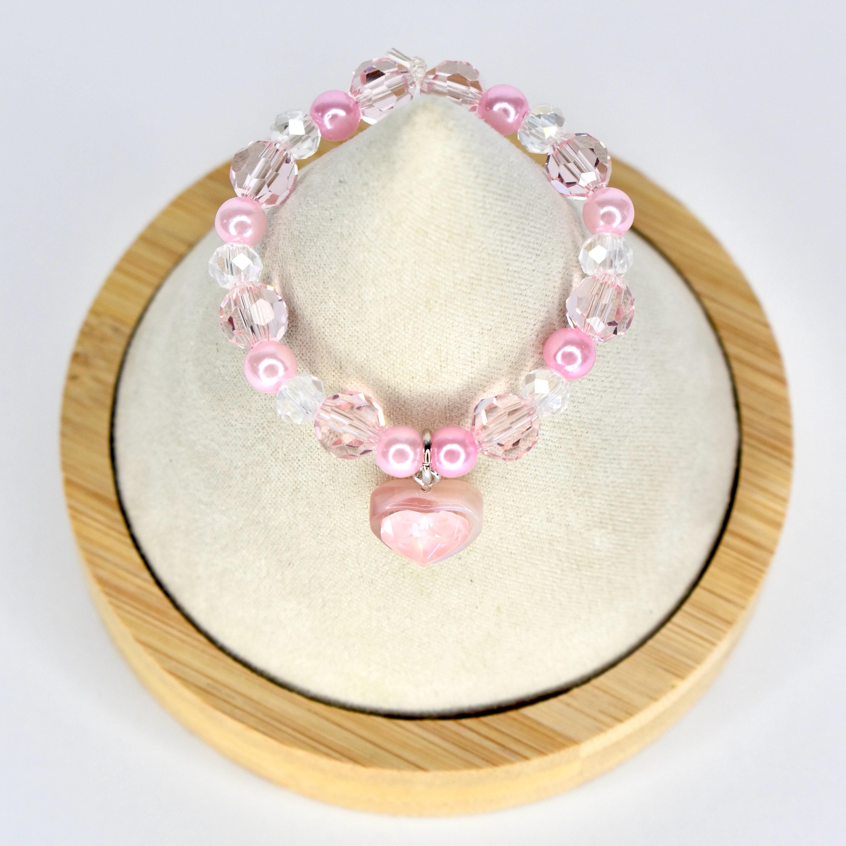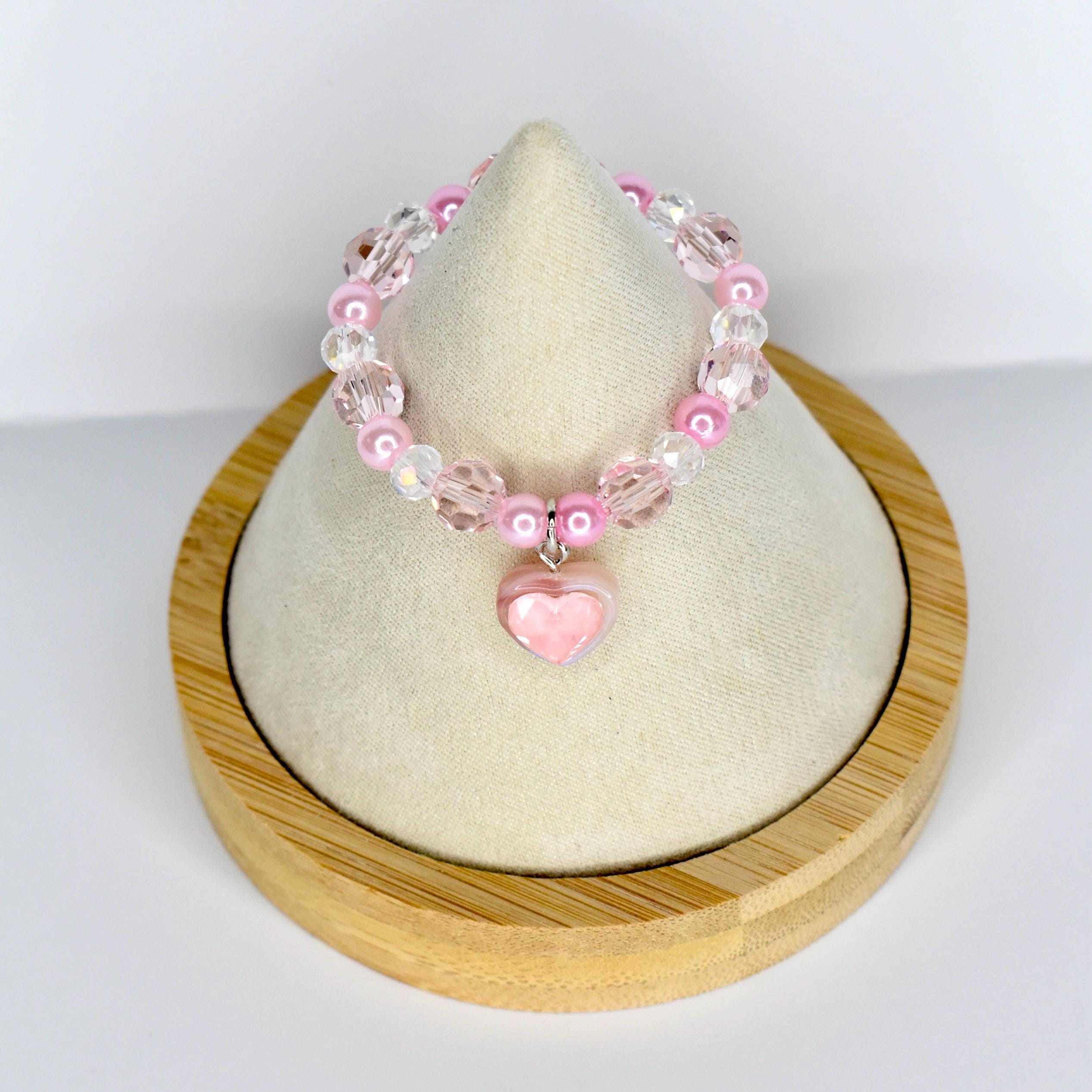 Handcrafted with sparkling faceted pink crystal beads, soft pink pearl spacers and a stunning puffy pink heart pendant, this piece is pure girly perfection.