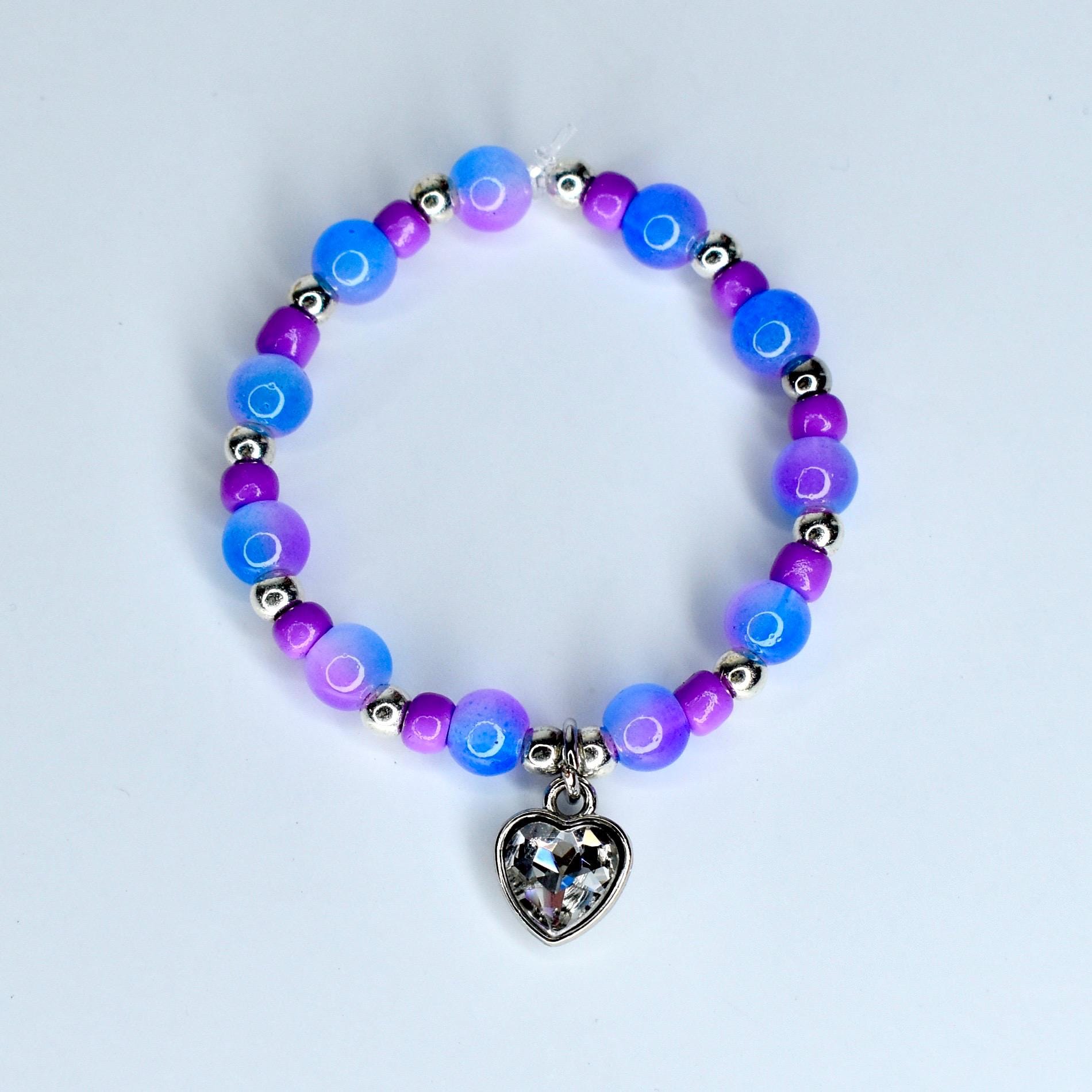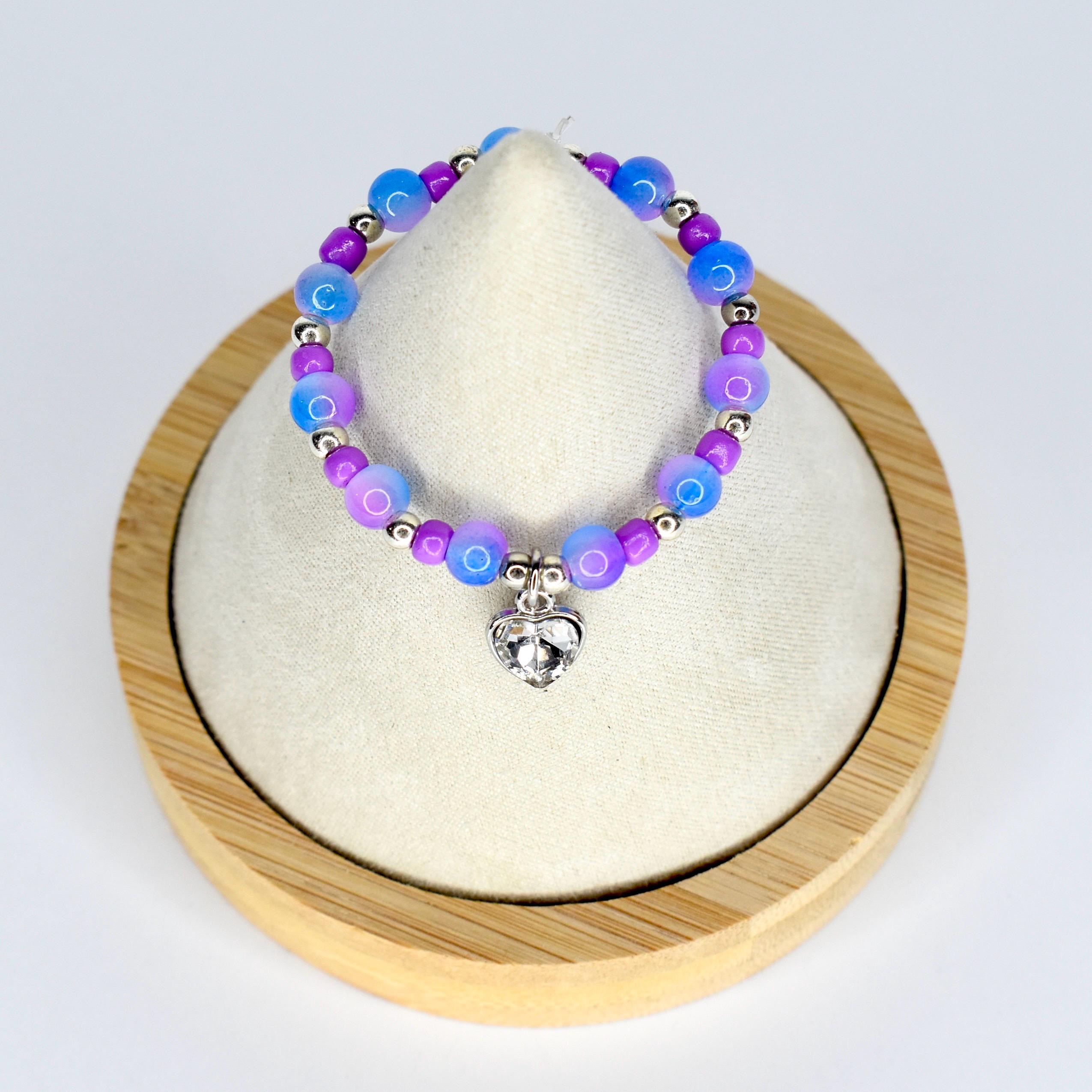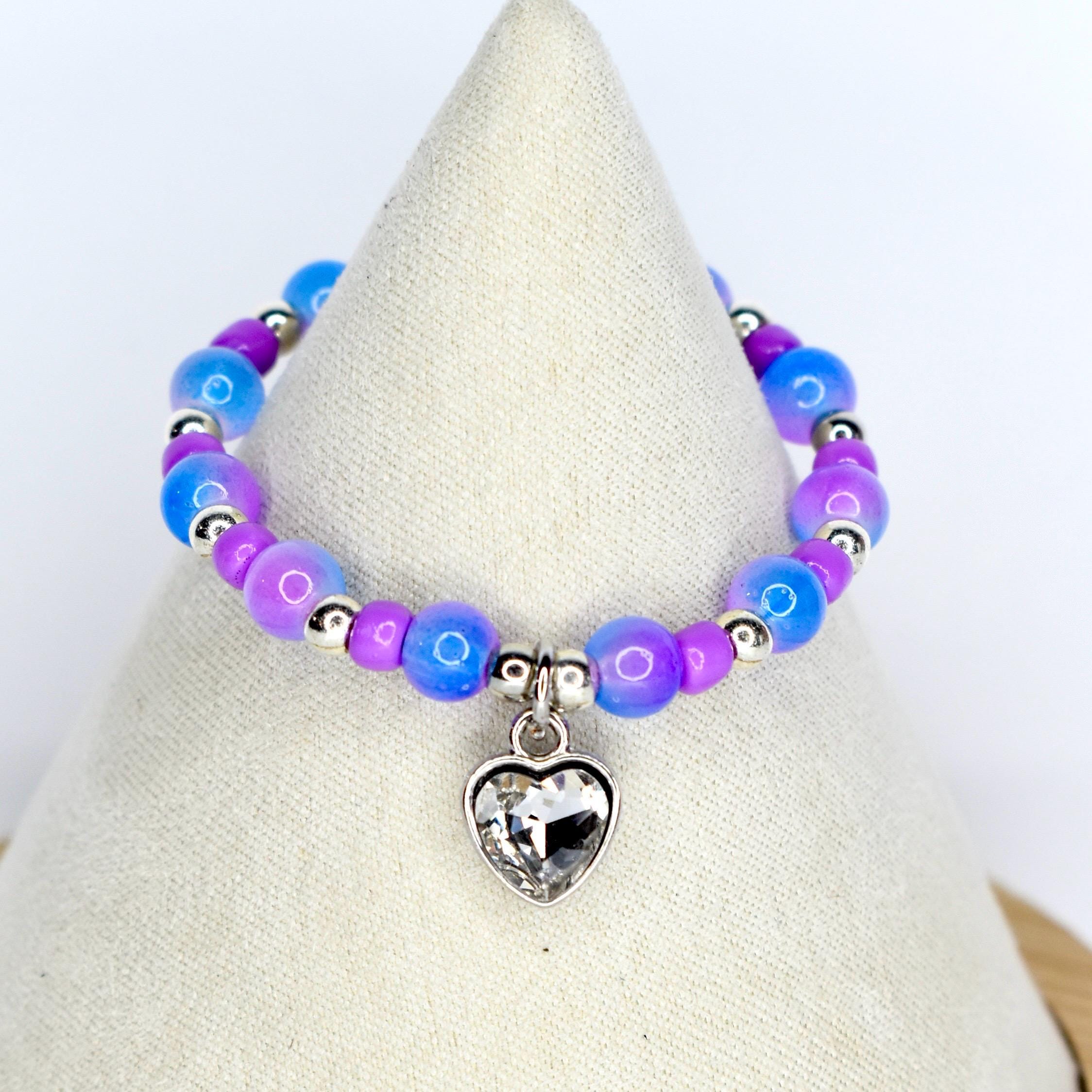Give your collectible monster doll an ethereal, otherworldly look with this stunning blue and purple beaded mini necklace! Featuring frosted periwinkle blue round beads, vibrant purple accent beads and silver-tone spacers, this necklace is finished with a sparkling crystal heart charm in a silver setting — equal parts edgy and magical.