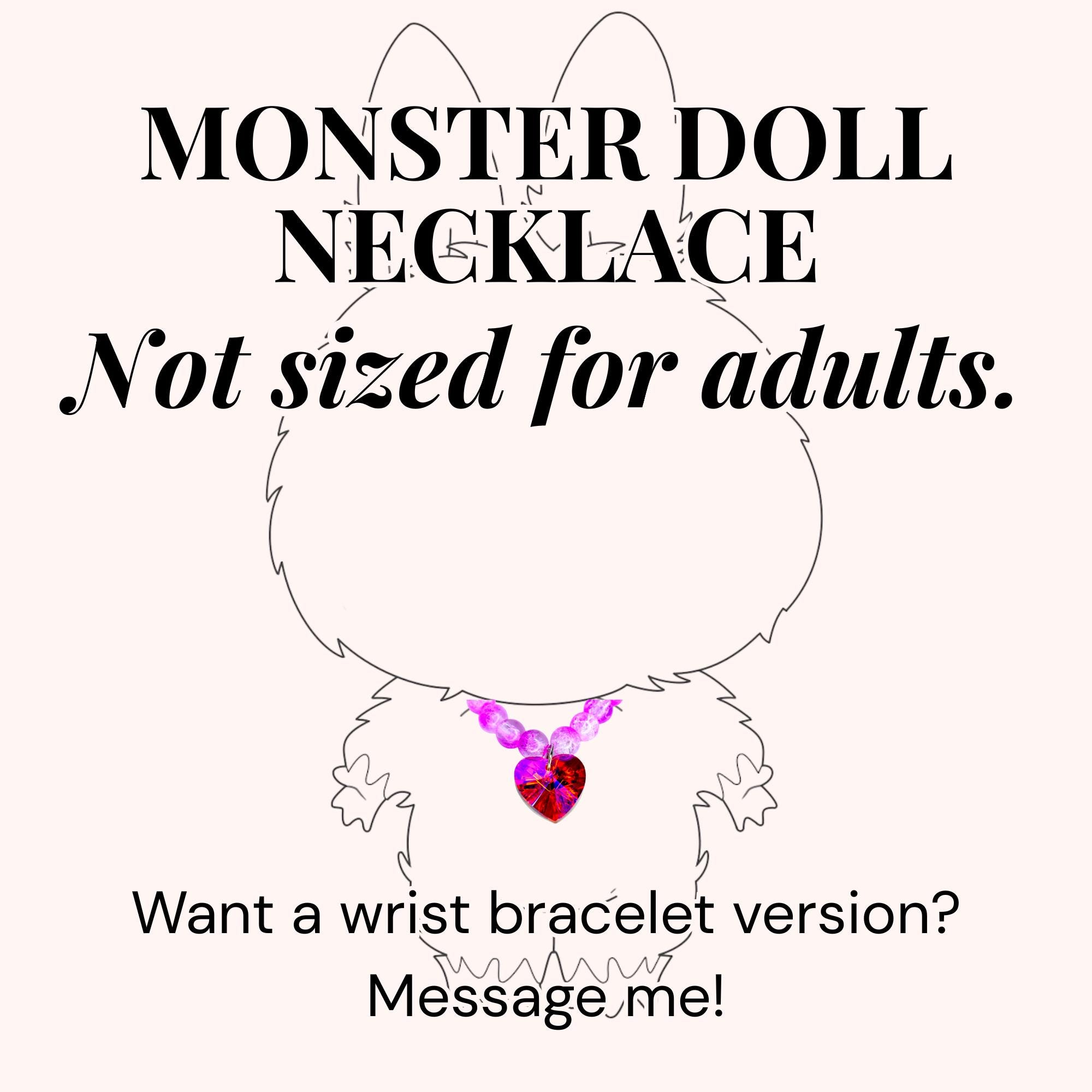 ⚠️ Please note: This mini necklace is sized for 17cm collectible monster dolls, not adult wrists. Want one made in your size? Just send me a message and I'll make a custom version for you!