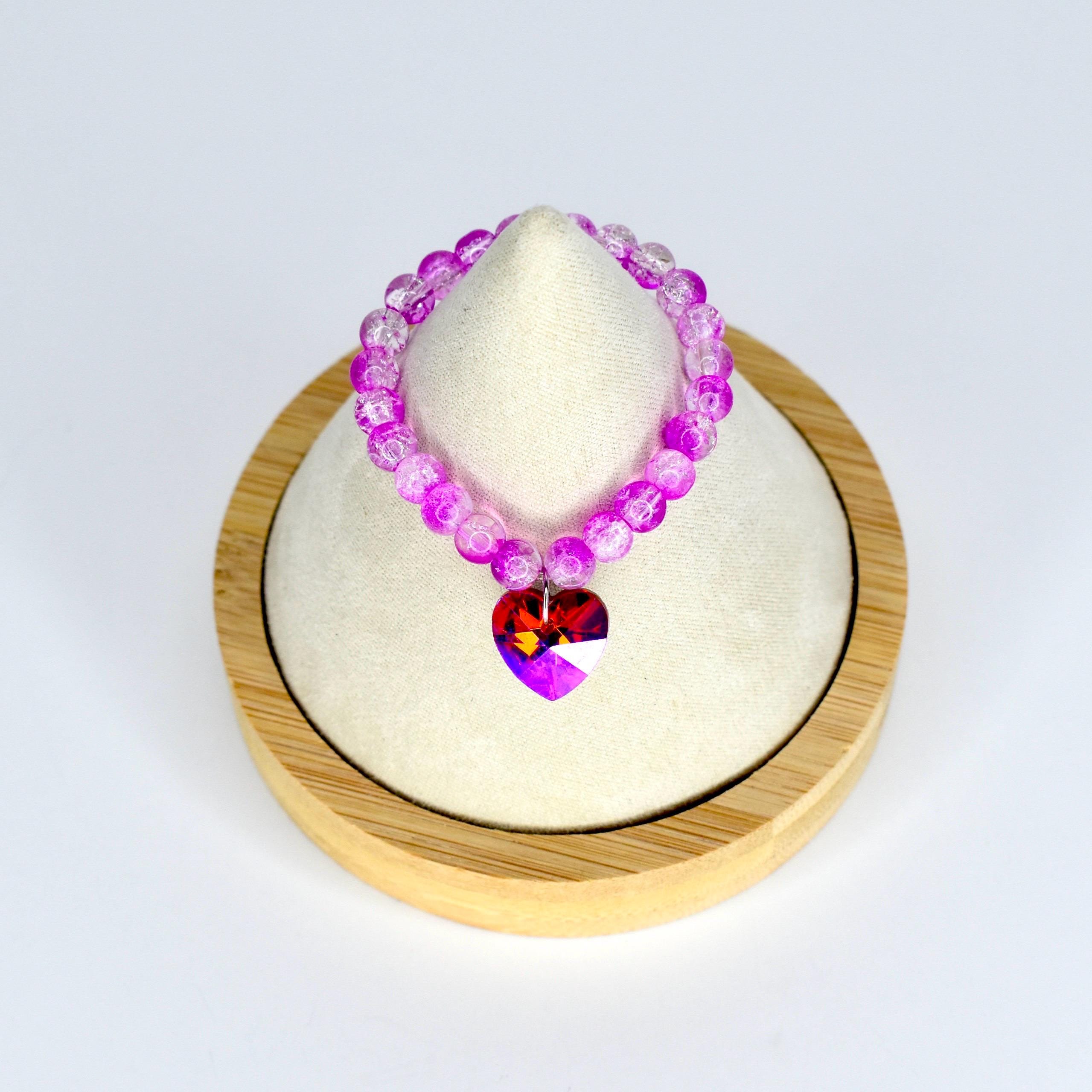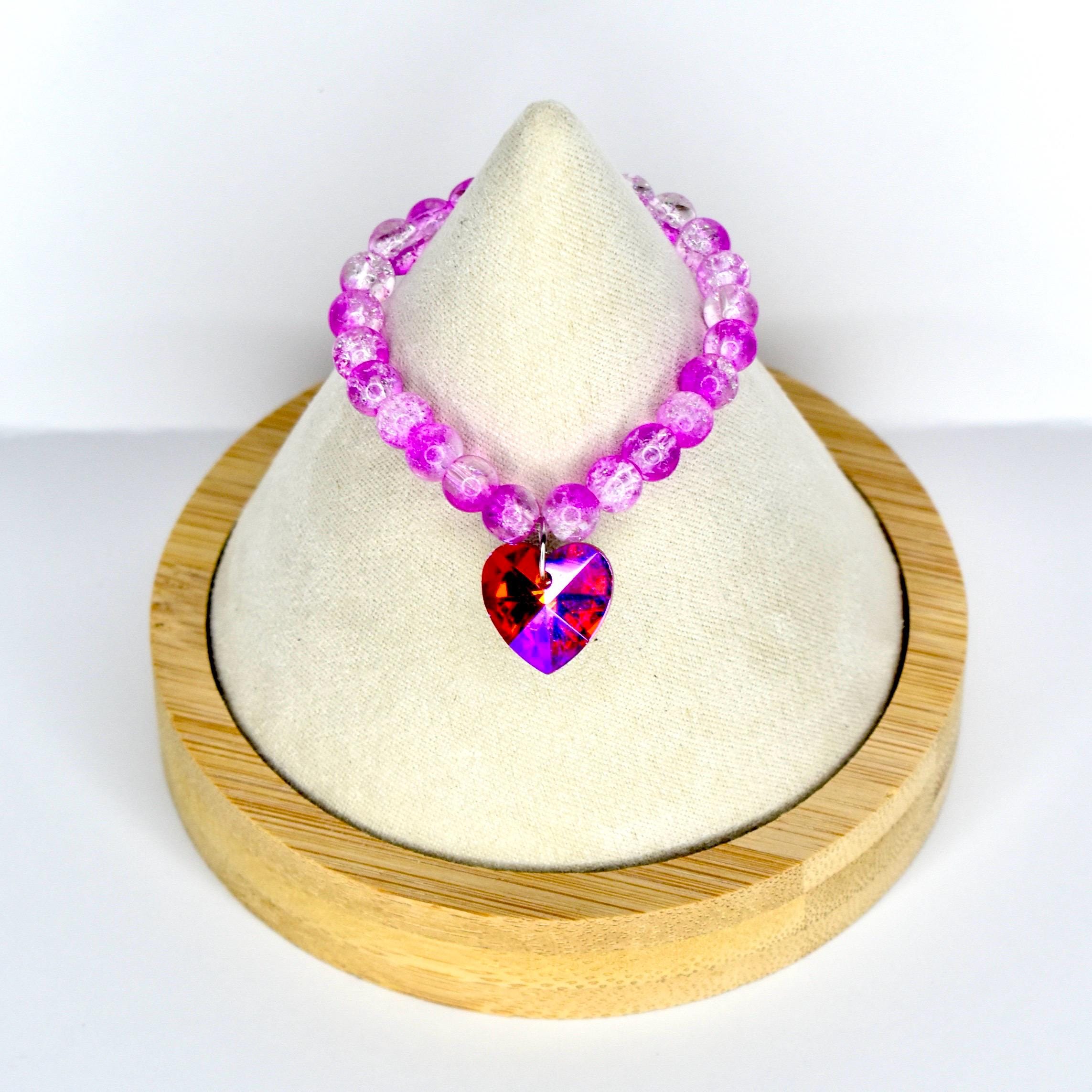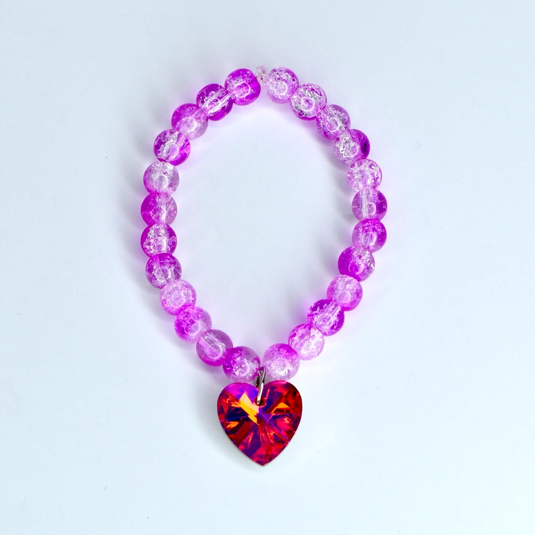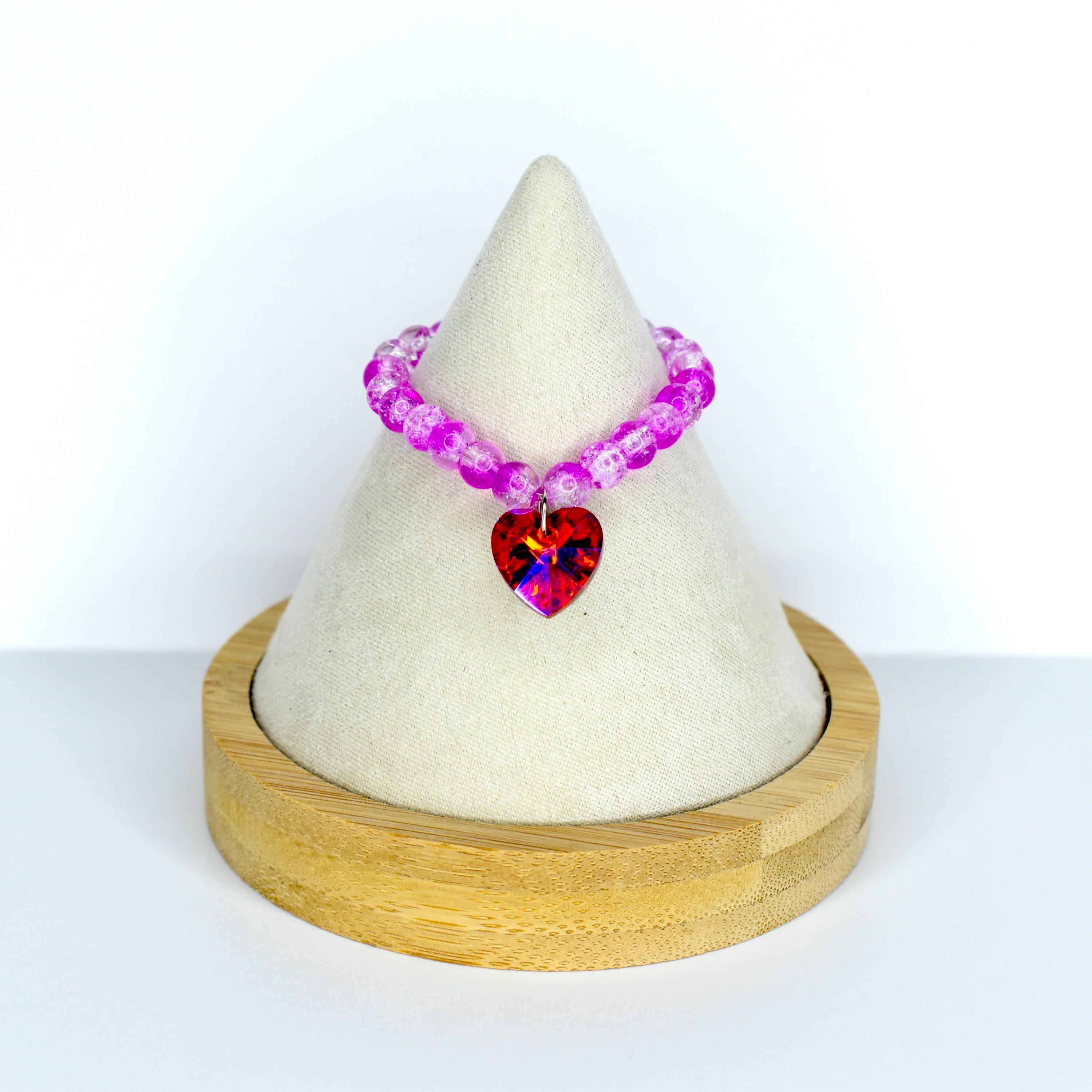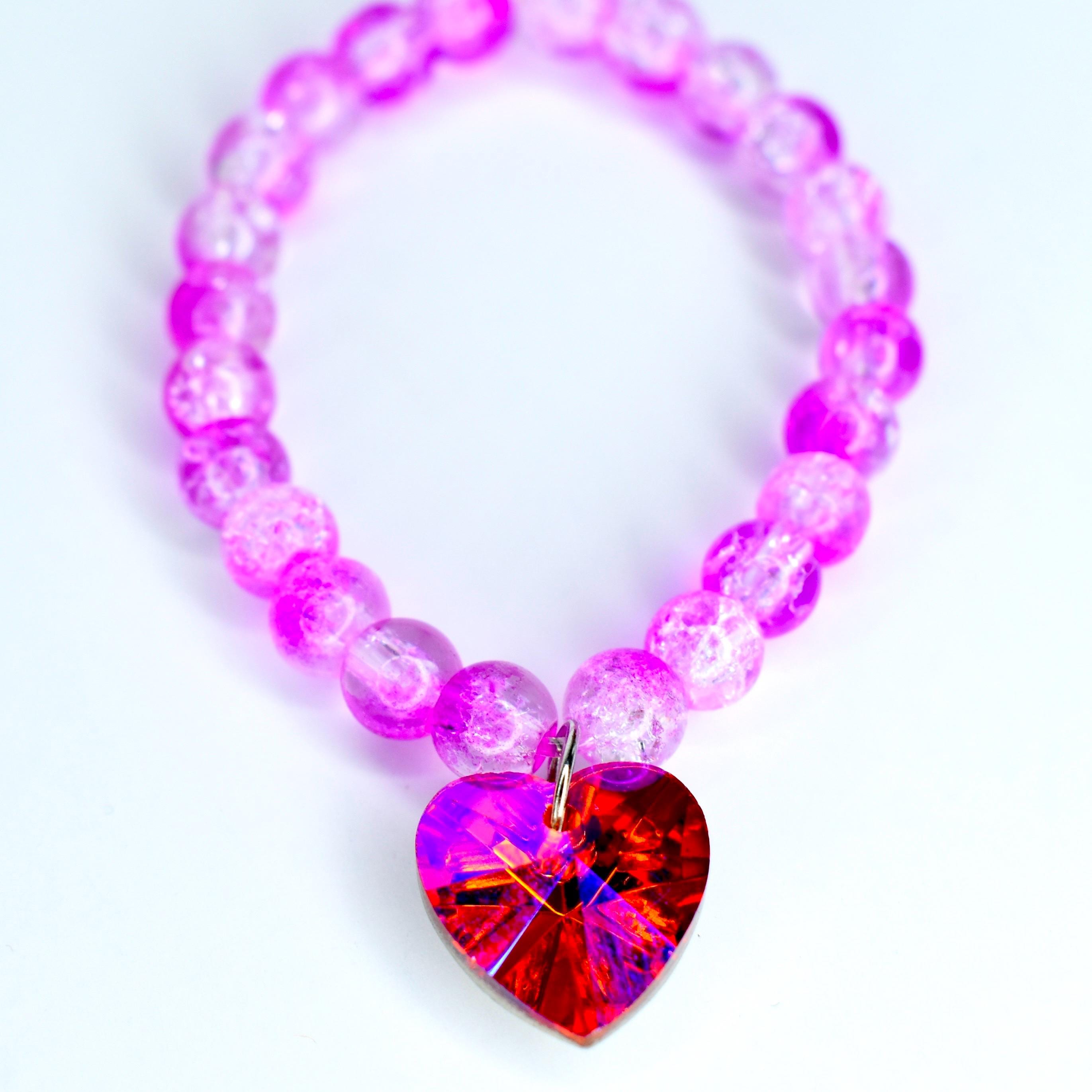 This one is pure fire. Featuring translucent pink crackle glass beads that shift from soft blush to vivid magenta, this mini necklace is finished with an absolutely stunning faceted crystal heart pendant that flashes red, pink, orange and violet from every angle. It’s bold, it’s dreamy and it’s impossible to ignore.