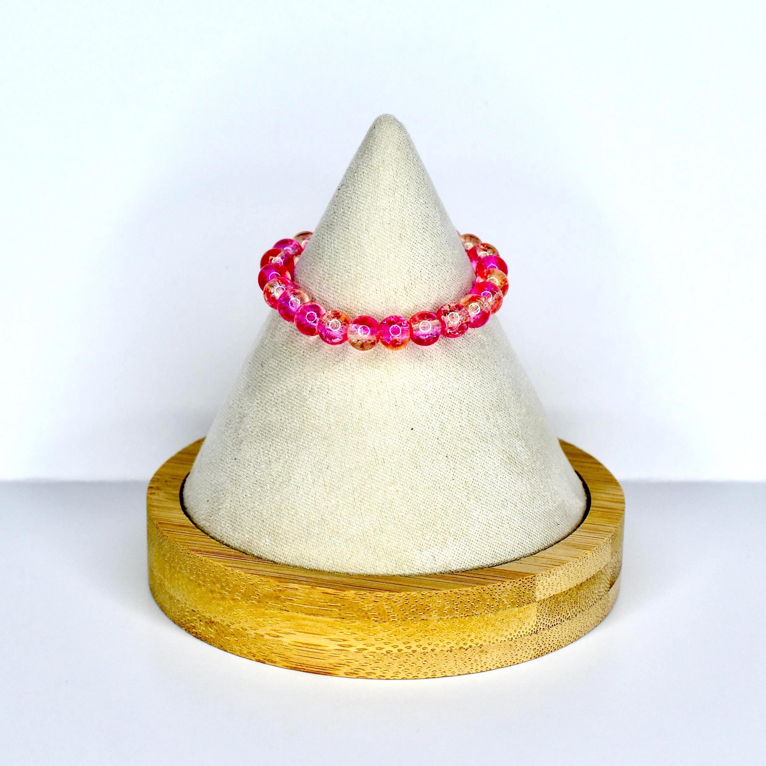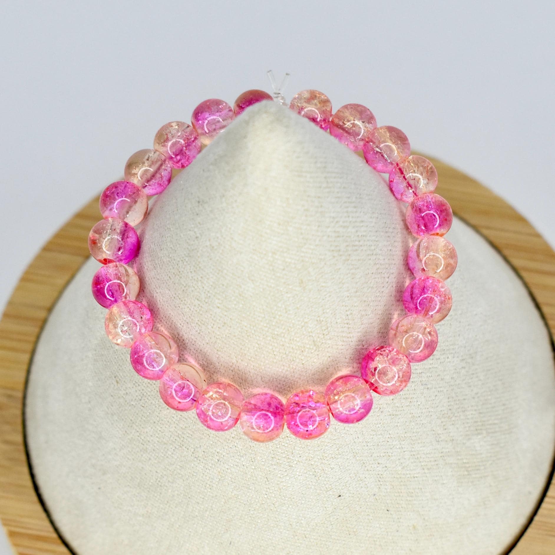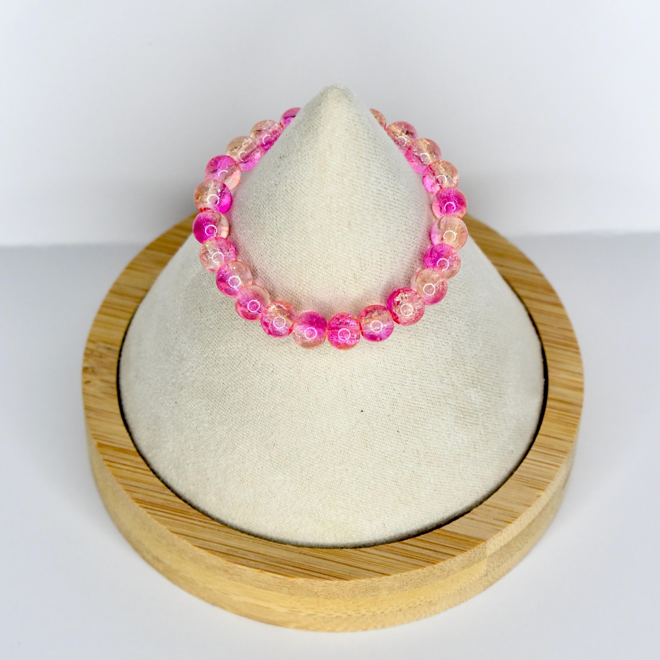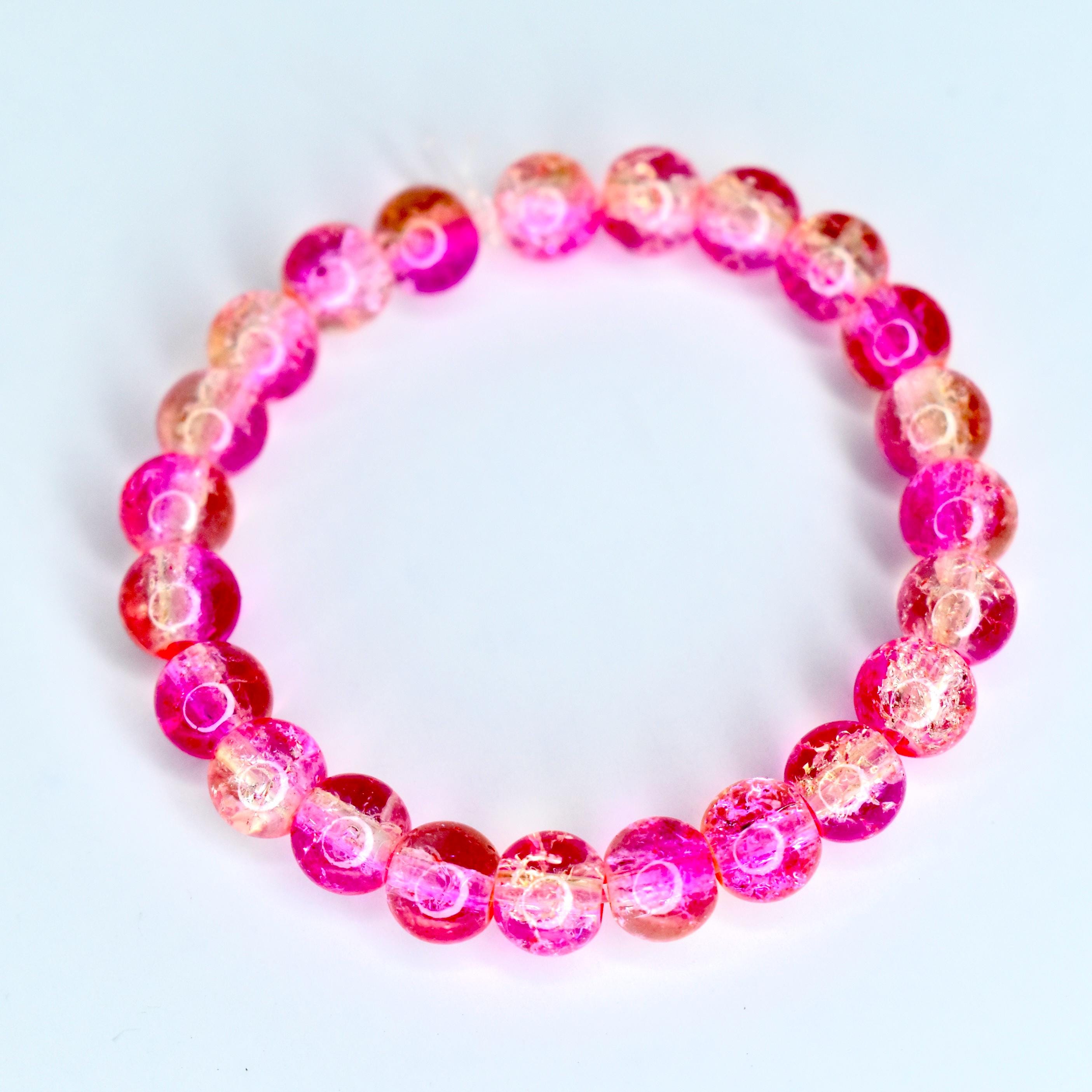 • Translucent crackle glass round beads in blush, pink and fuchsia