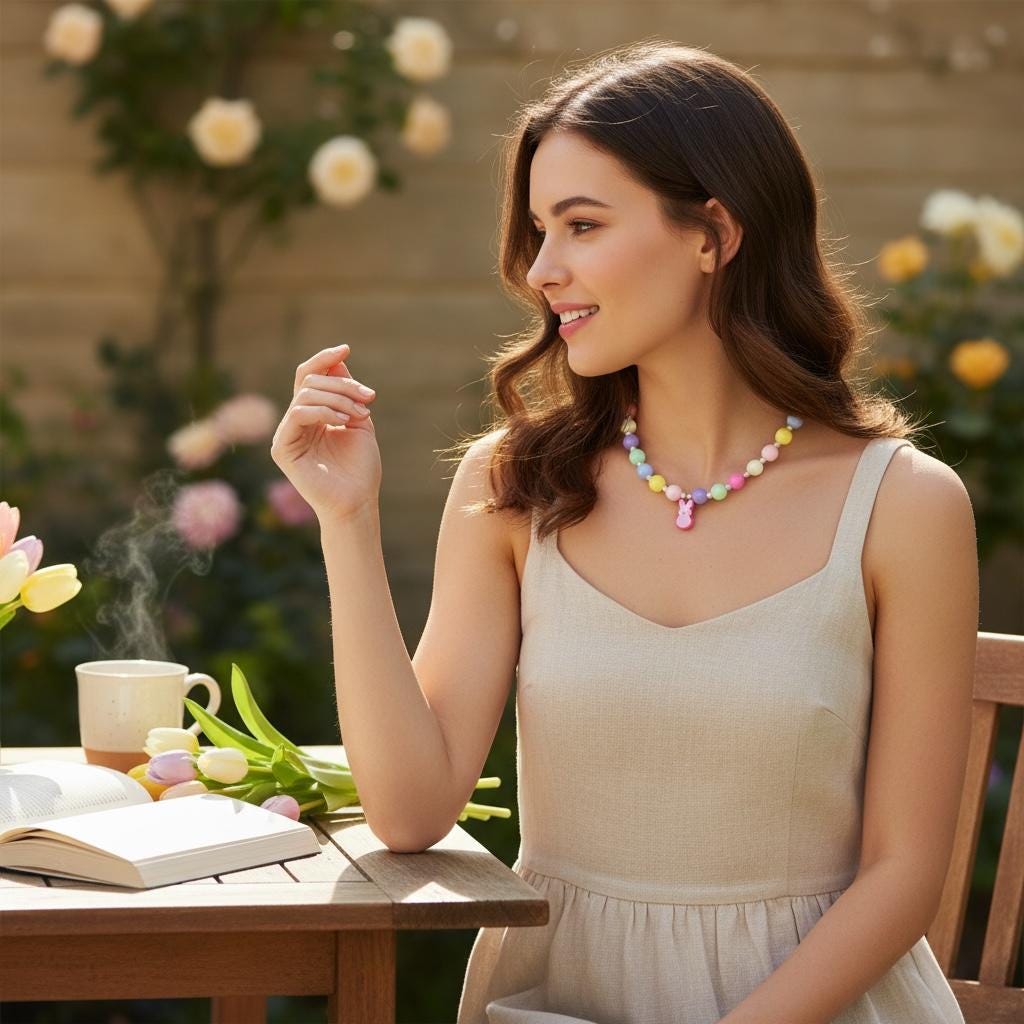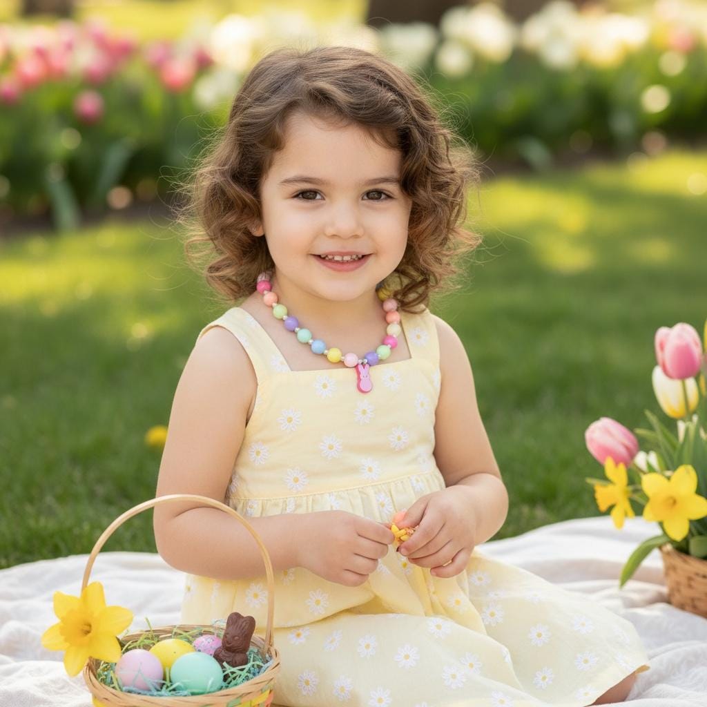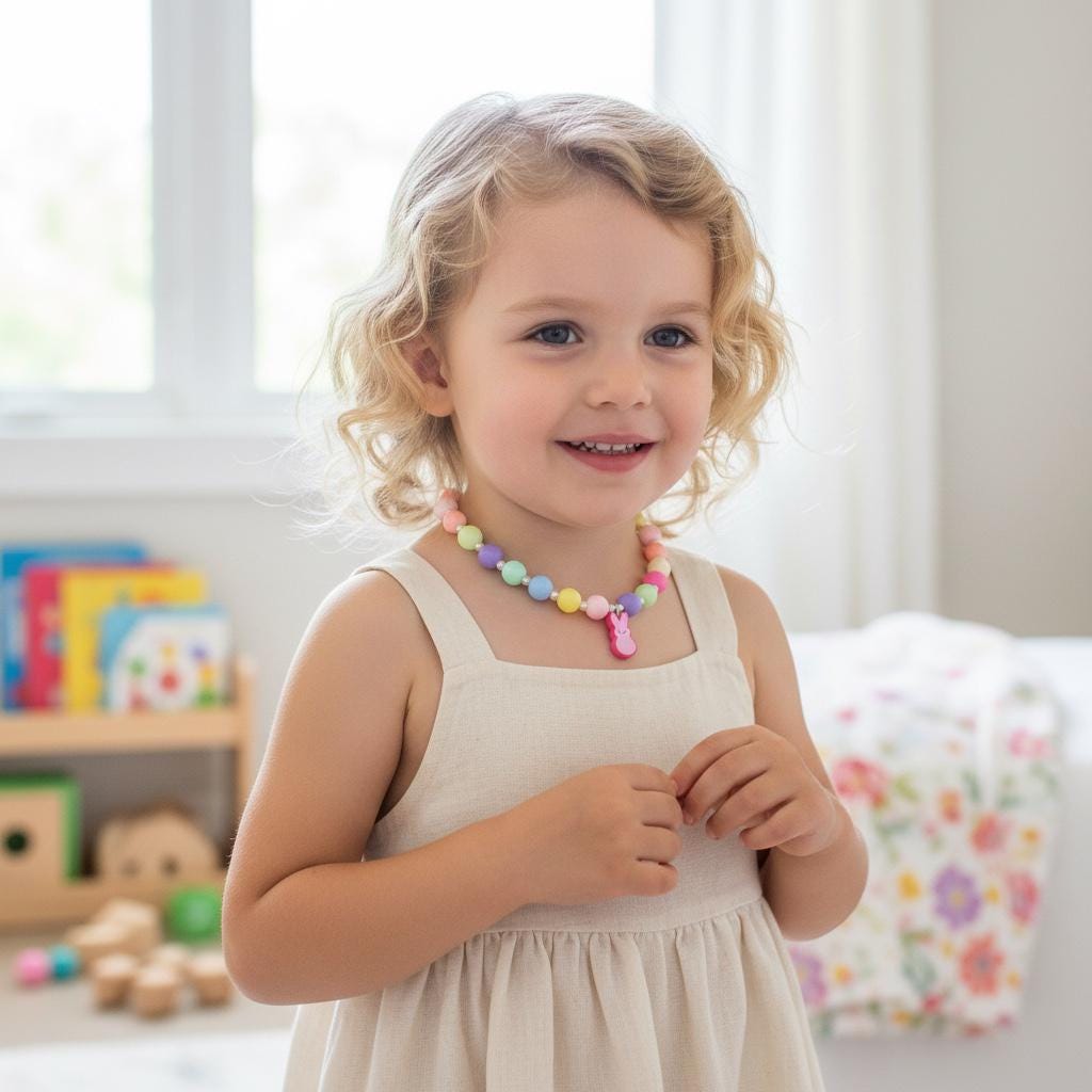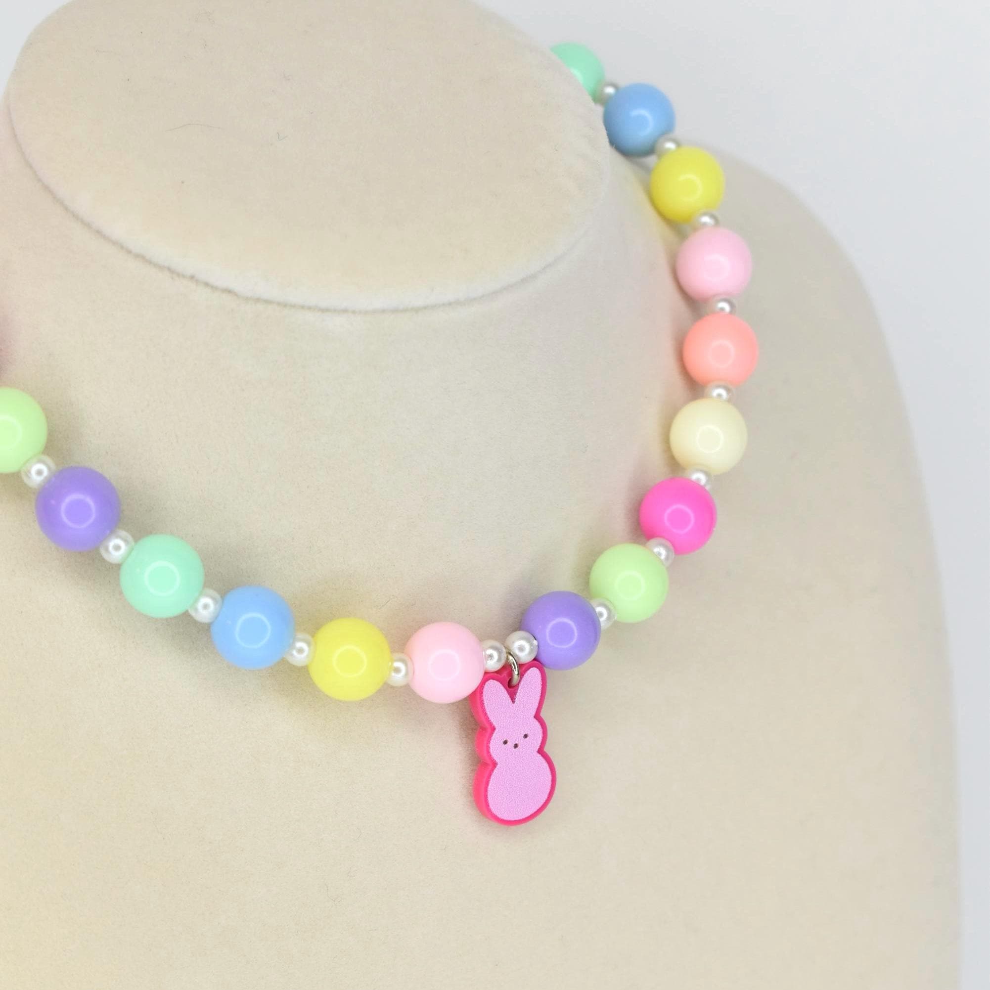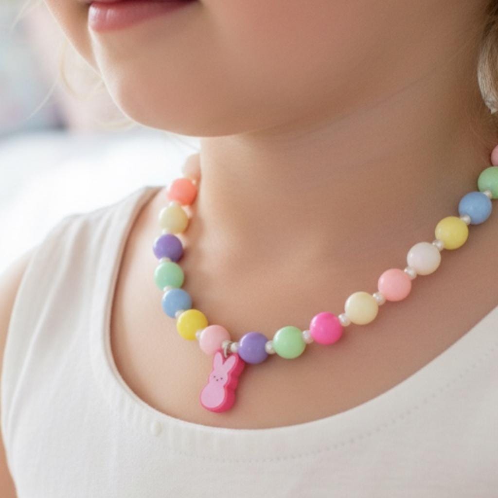 Perfect for Easter Sunday outfits, spring birthdays, Easter basket stuffers or just because you love all things pastel and cute. This necklace works beautifully on kids and adults alike — wear it as a sweet statement piece or everyday spring accessory.