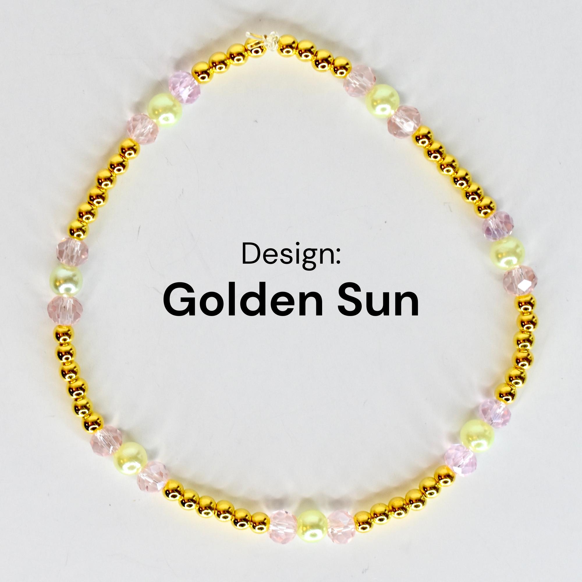Each bracelet is finished with gold-tone metal beads and accents for a warm, luxe look.