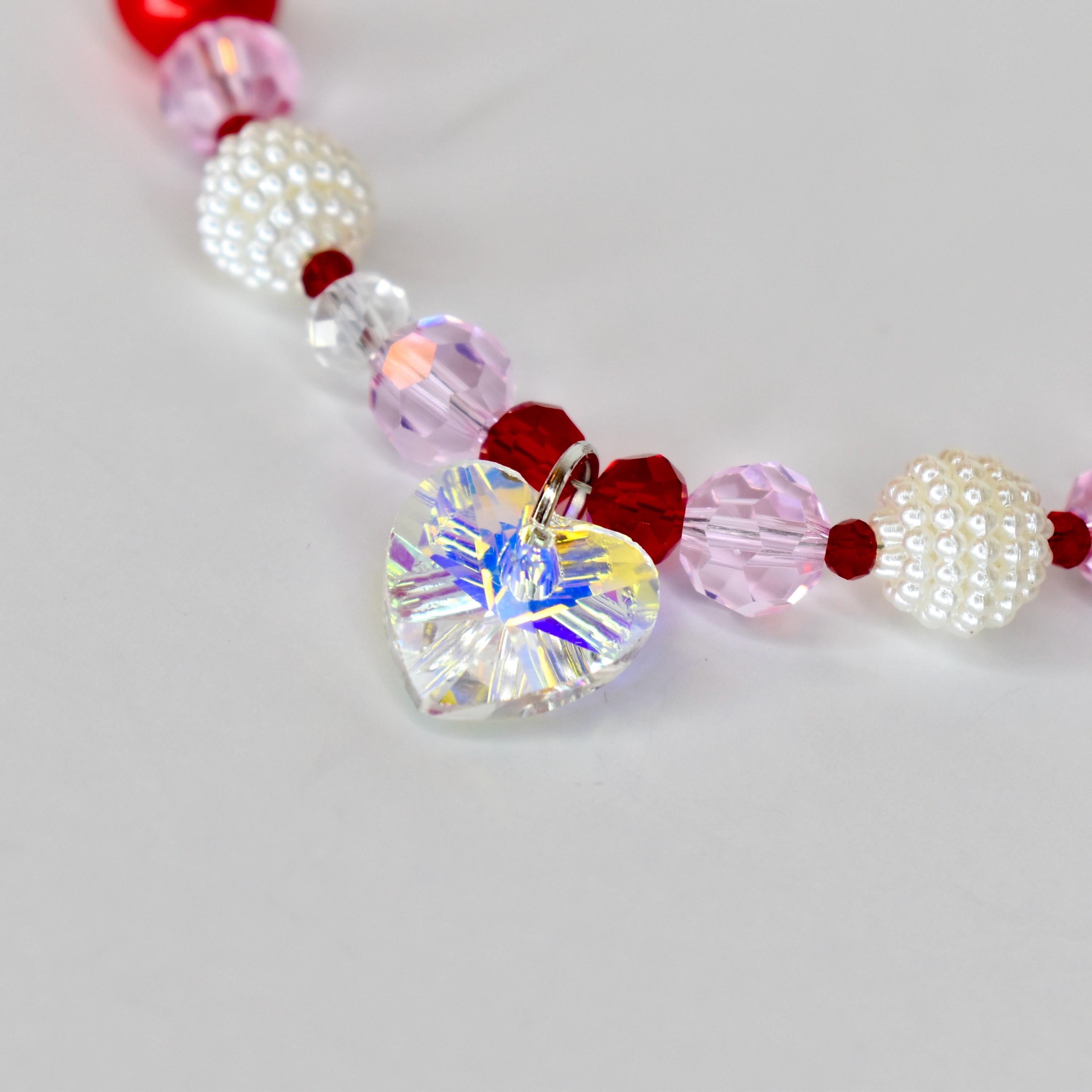Some pieces just make your heart glow. đź’– The Sweetheart Crystal Necklace is a handcrafted beaded necklace centered around a stunning aurora borealis crystal heart pendant that catches the light in the most magical way. Available in both kids and adult sizes, this piece is as sweet as it is sparkly.