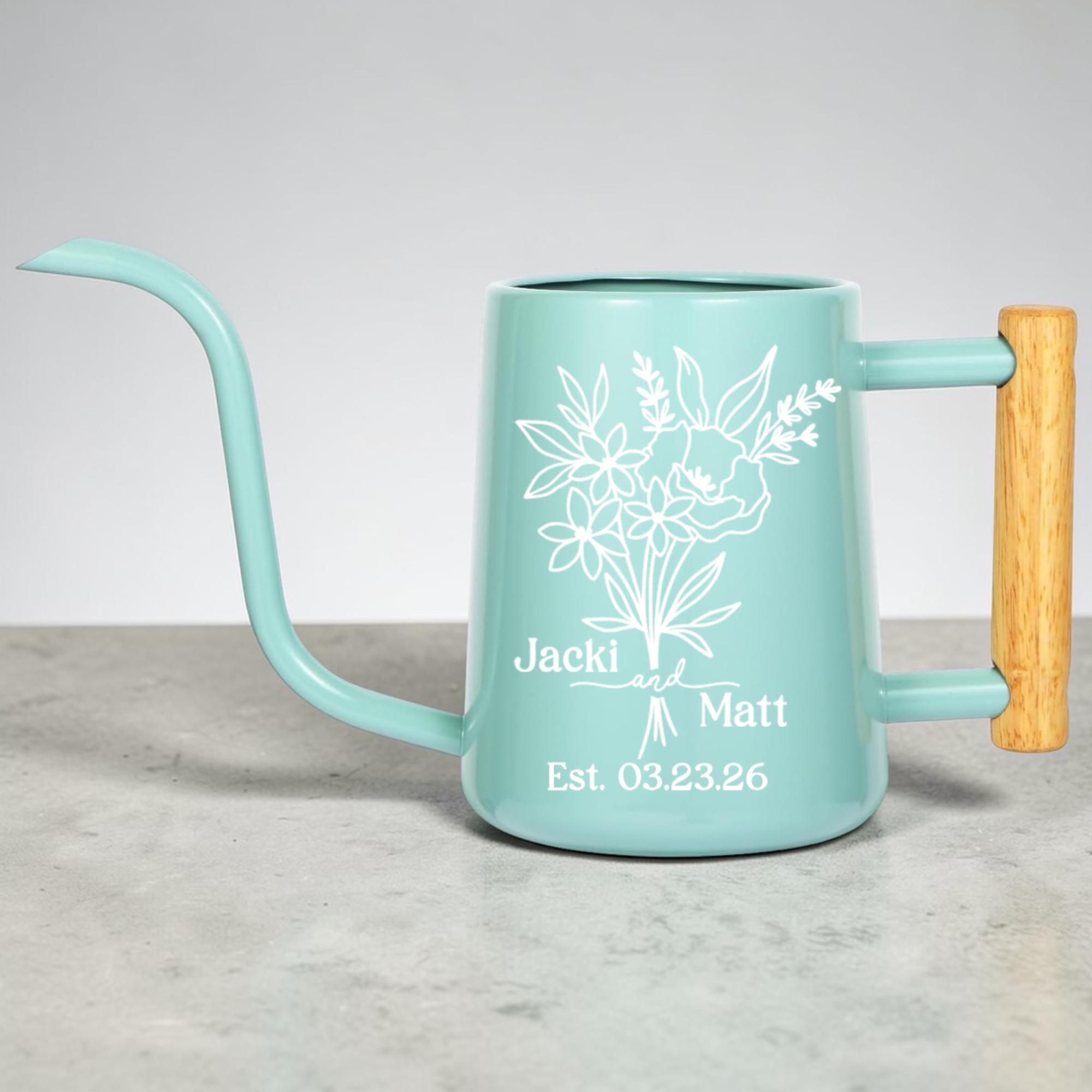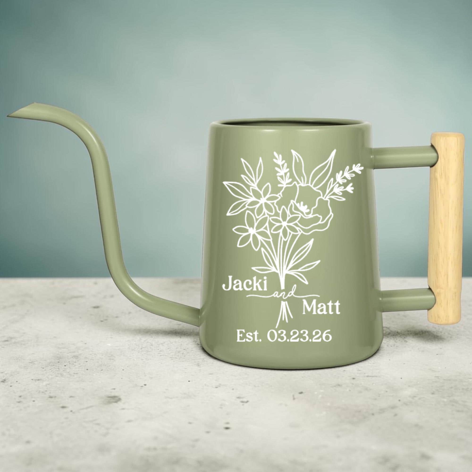 Perfect for watering houseplants, patio blooms, or kitchen herbs, this customizable sage green watering can also makes a meaningful gift for Mother's Day, birthdays, or any plant-loving person.