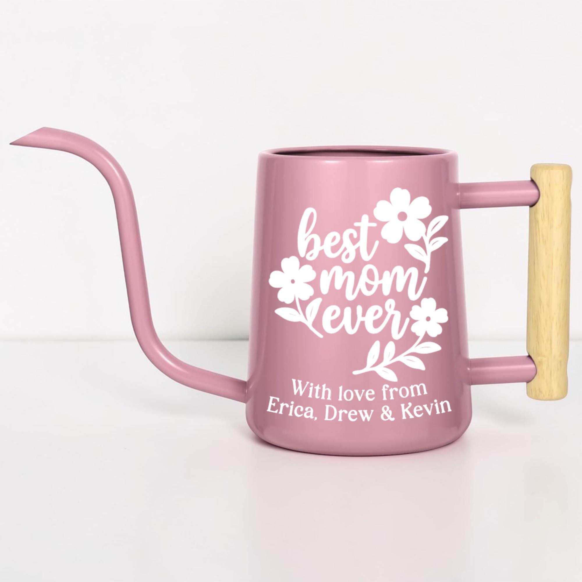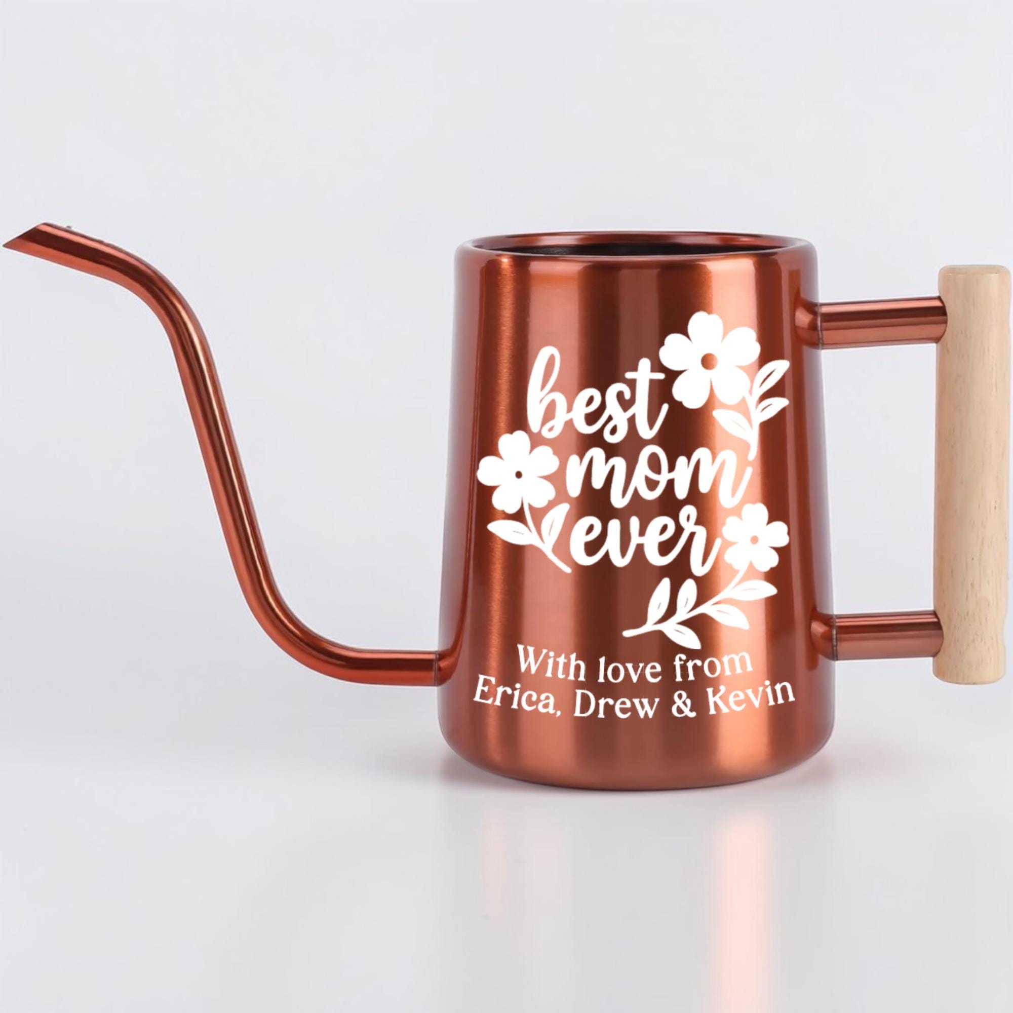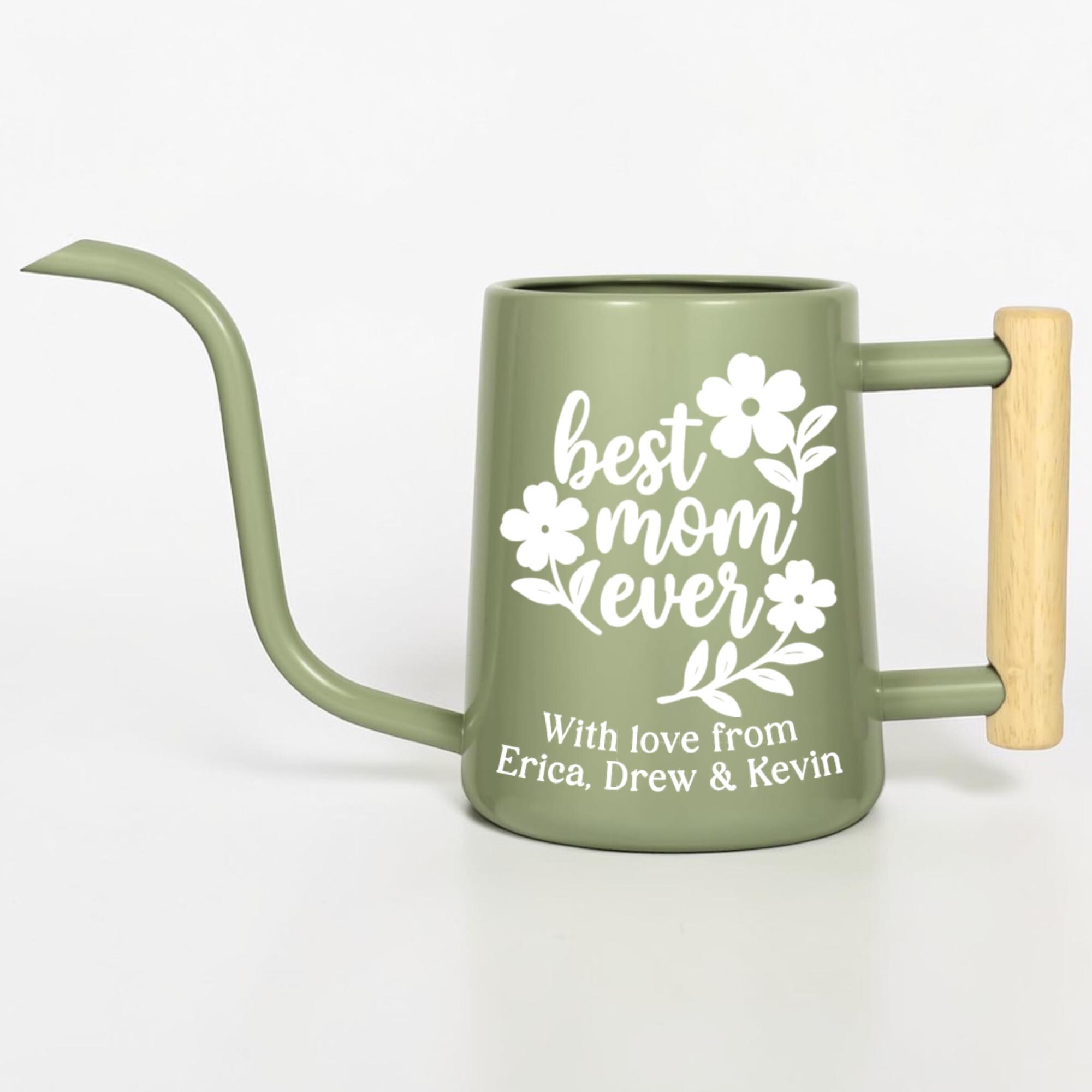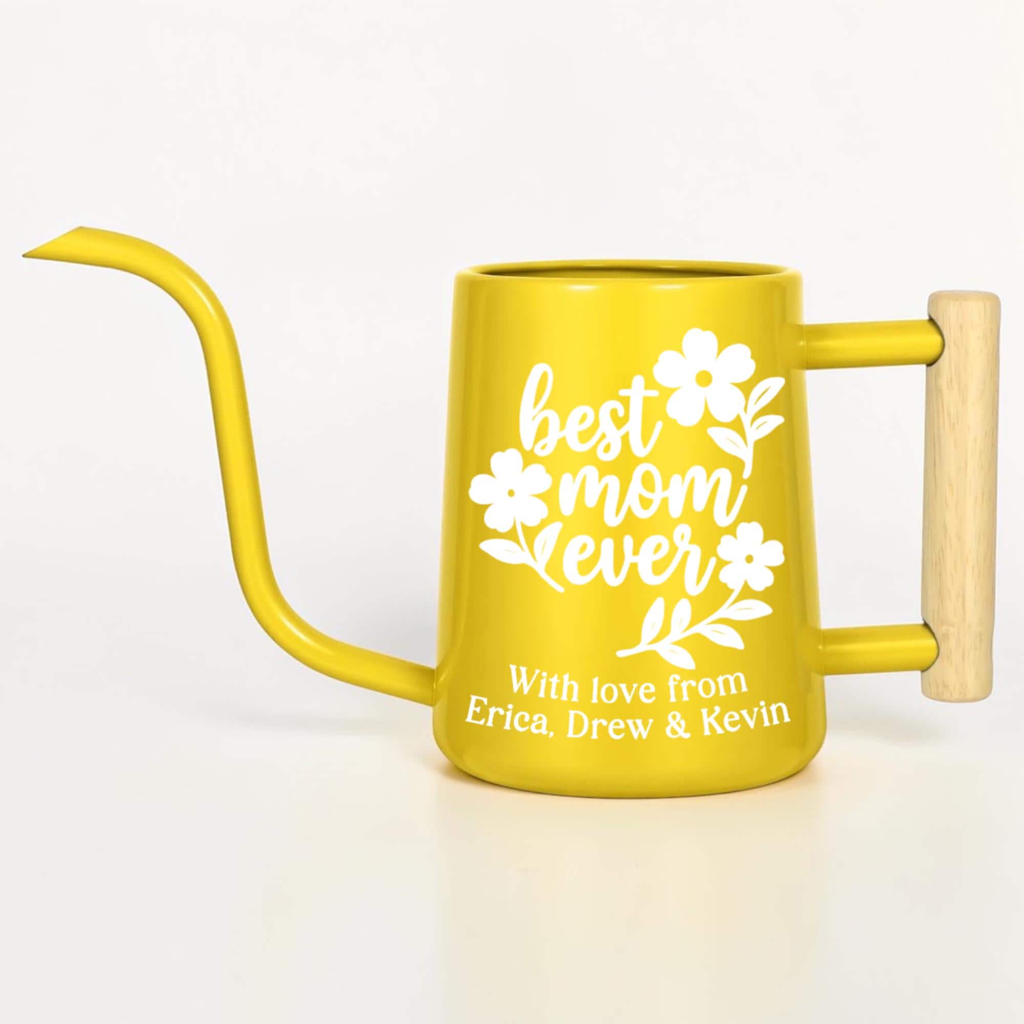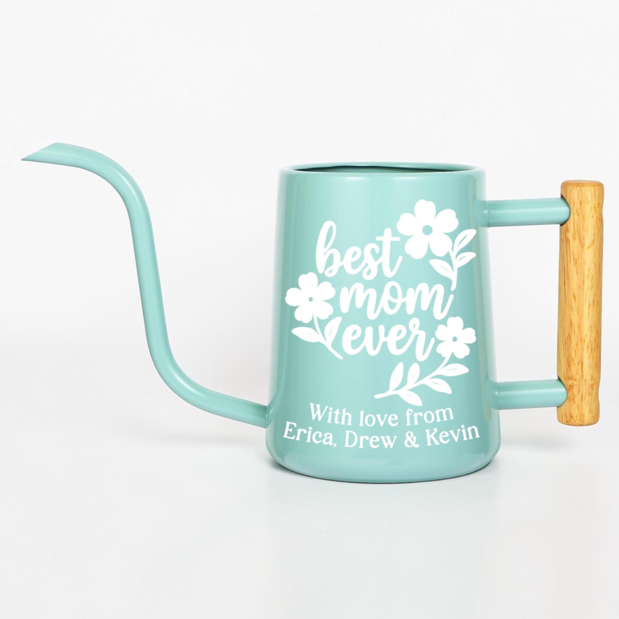 This matte finish gooseneck watering can is personalized just for her, featuring a hand-lettered floral design and a custom message she'll treasure every single time she tends to her plants. With a sleek matte body, precision gooseneck spout and warm wood-accented handle, it's as stylish as it is functional.