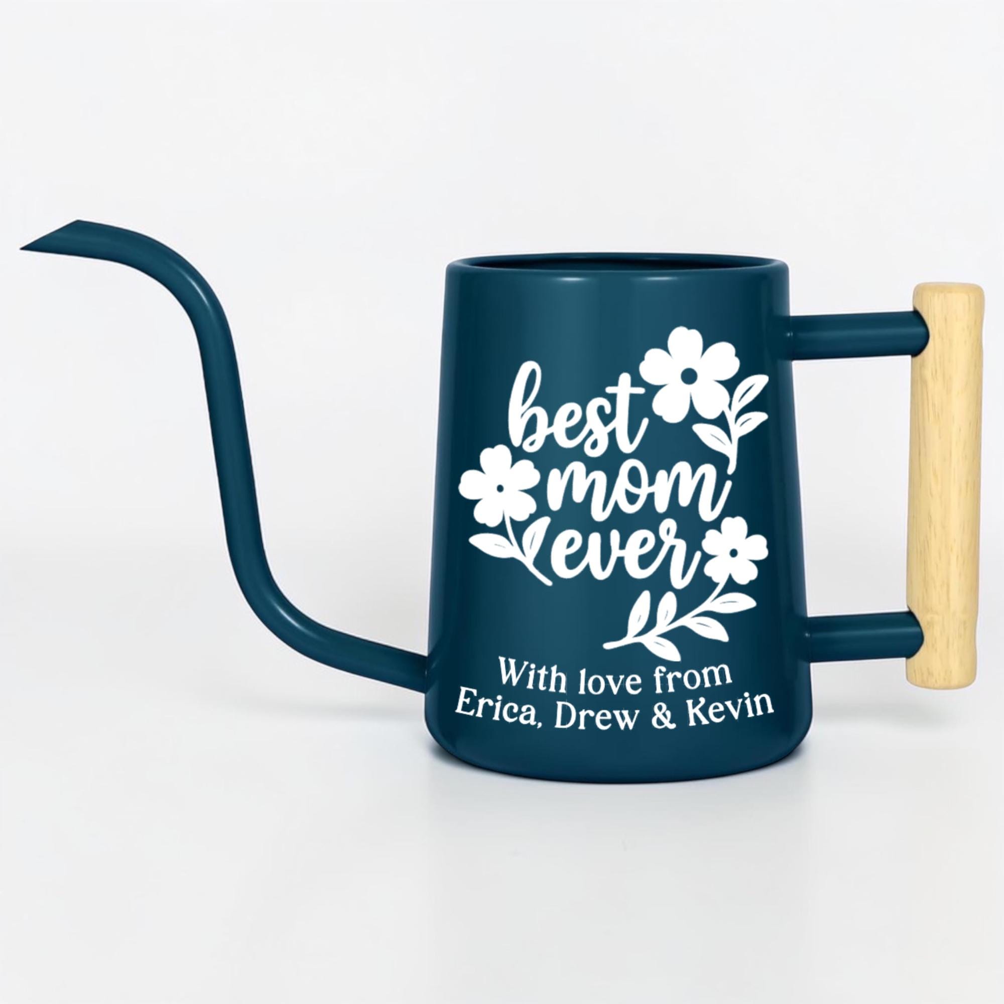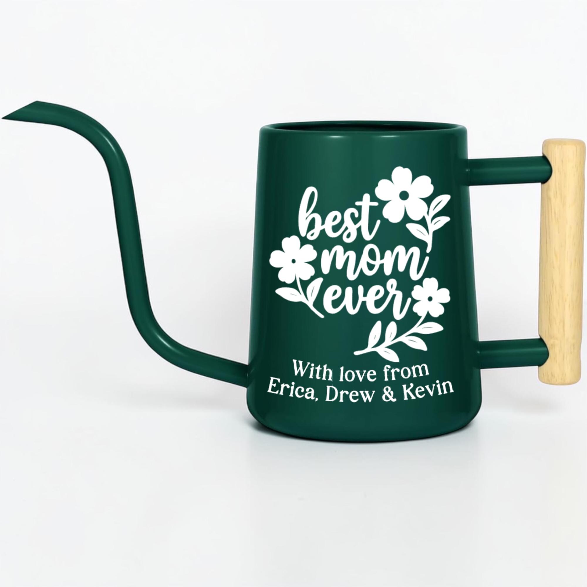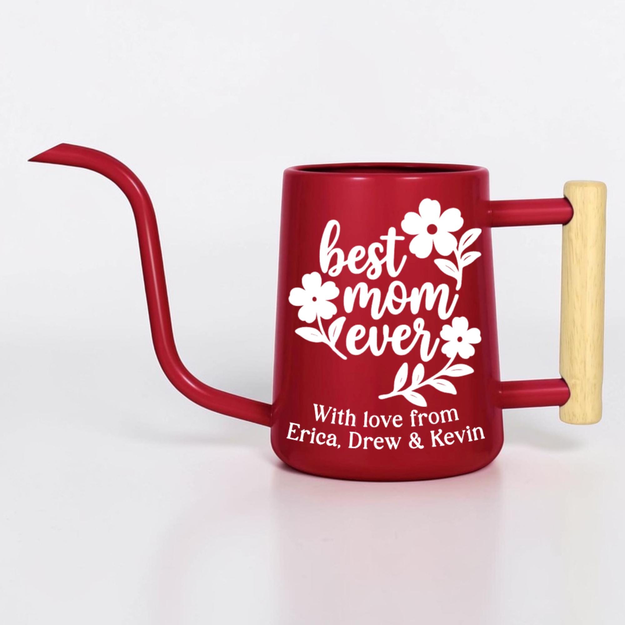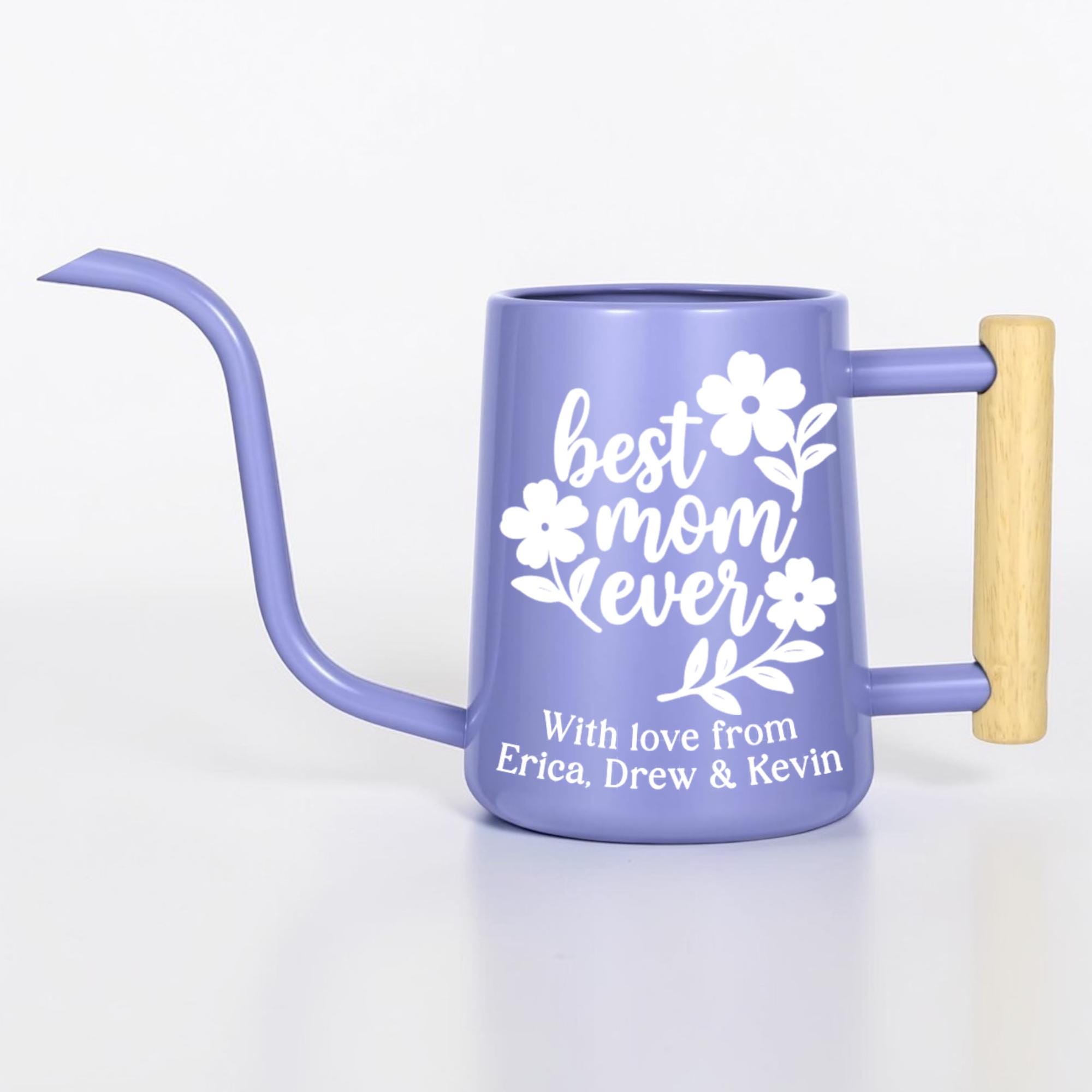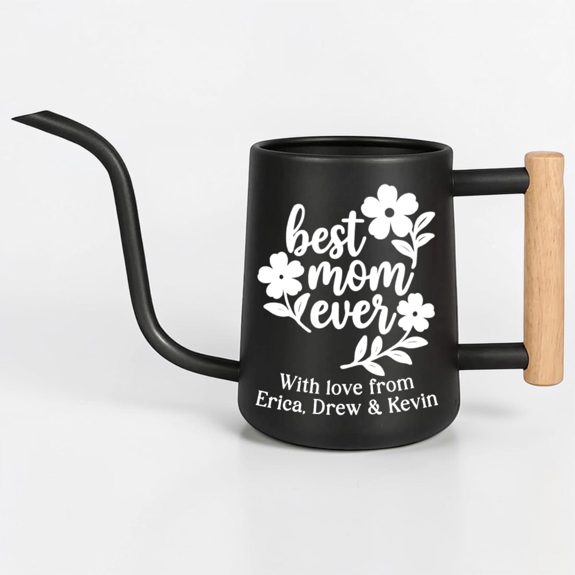 This matte finish gooseneck watering can is personalized just for her, featuring a hand-lettered floral design and a custom message she'll treasure every single time she tends to her plants. With a sleek matte body, precision gooseneck spout and warm wood-accented handle, it's as stylish as it is functional.