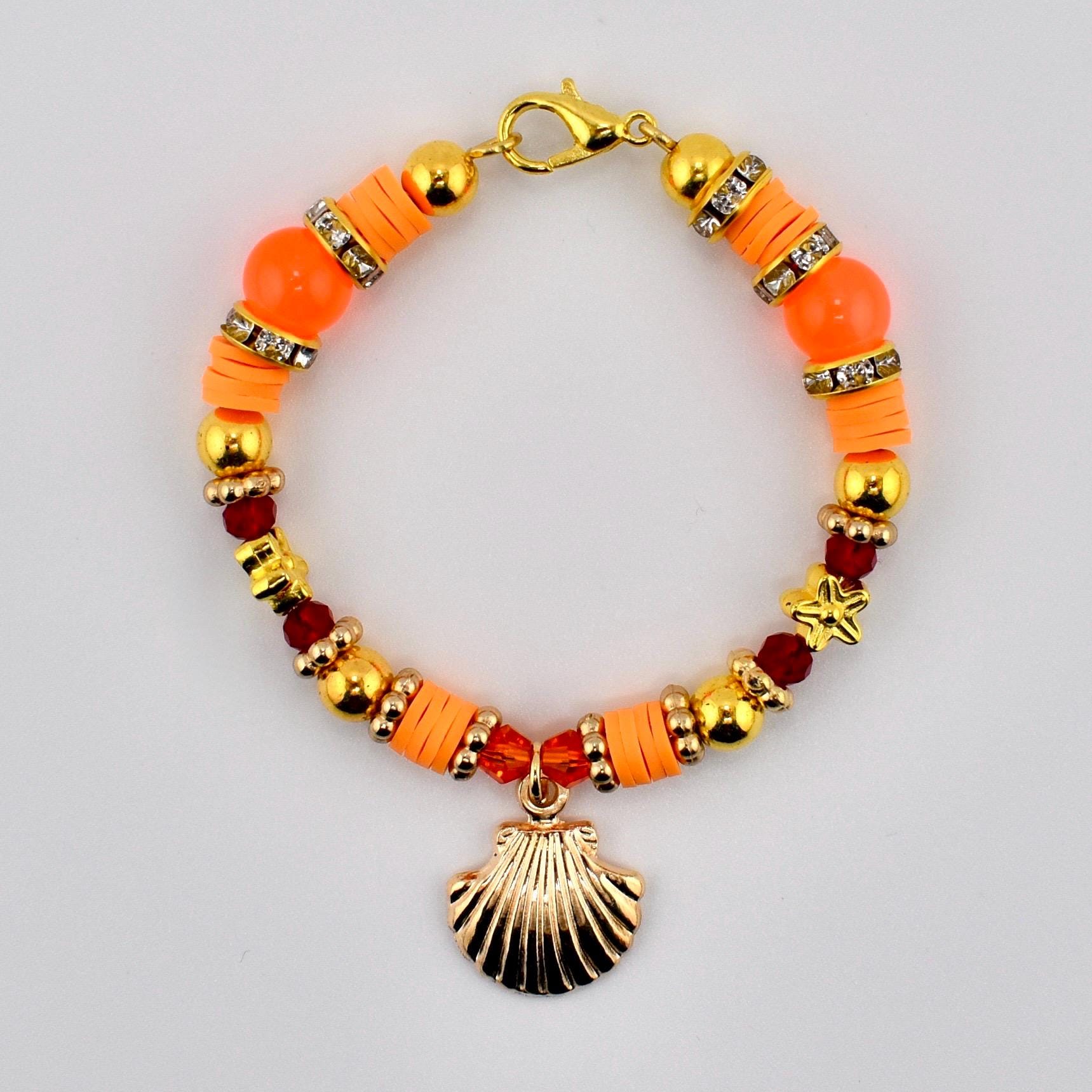 This warm-toned beauty features a curated mix of coral heishi beads, deep red crystal bicones, gold accents, rhinestone rondelles and polished gold beads — all centered around a stunning silver seashell charm pendant. It’s giving mermaid-core meets golden hour, and we are here for it.
