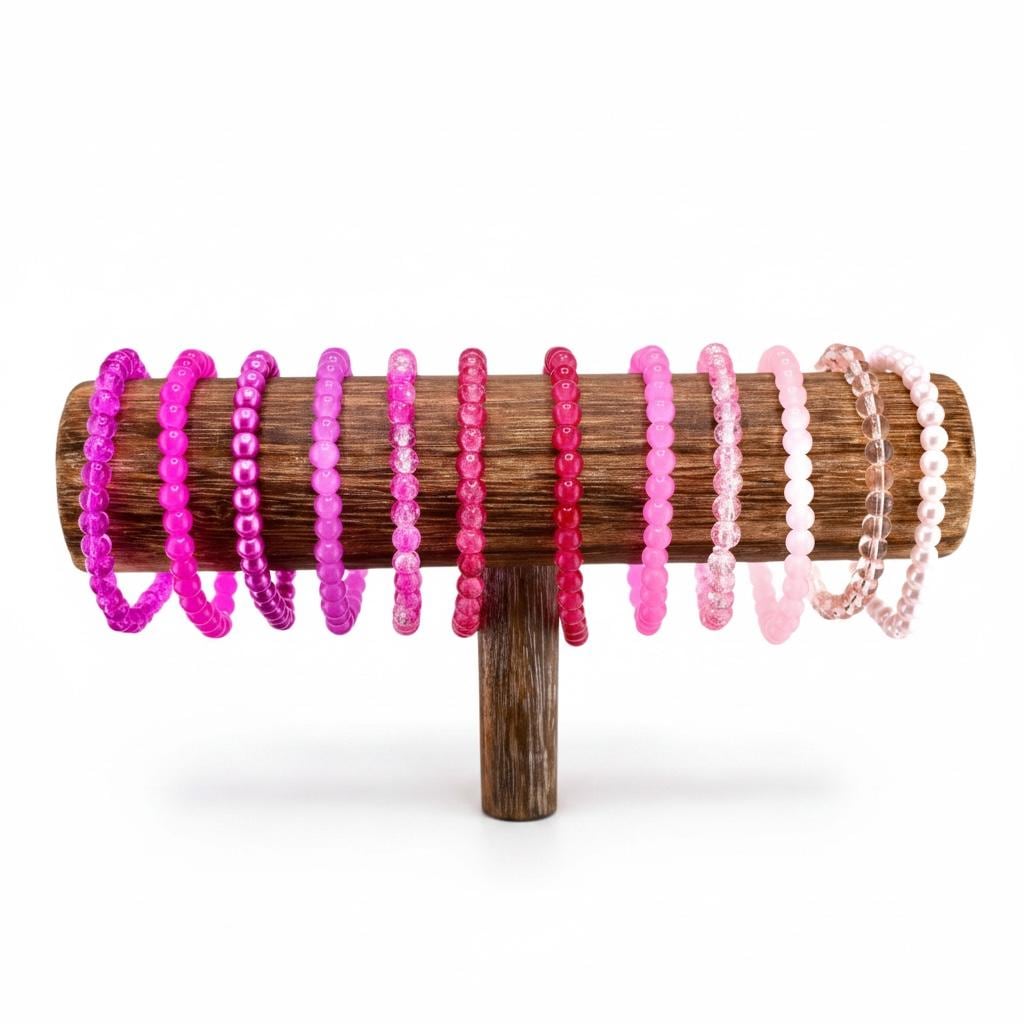 Add a soft pop of pink to your everyday stack! Each bracelet in this collection is handmade with high-quality glass beads on a durable stretch cord — designed to layer effortlessly or stand alone as a delicate statement piece.